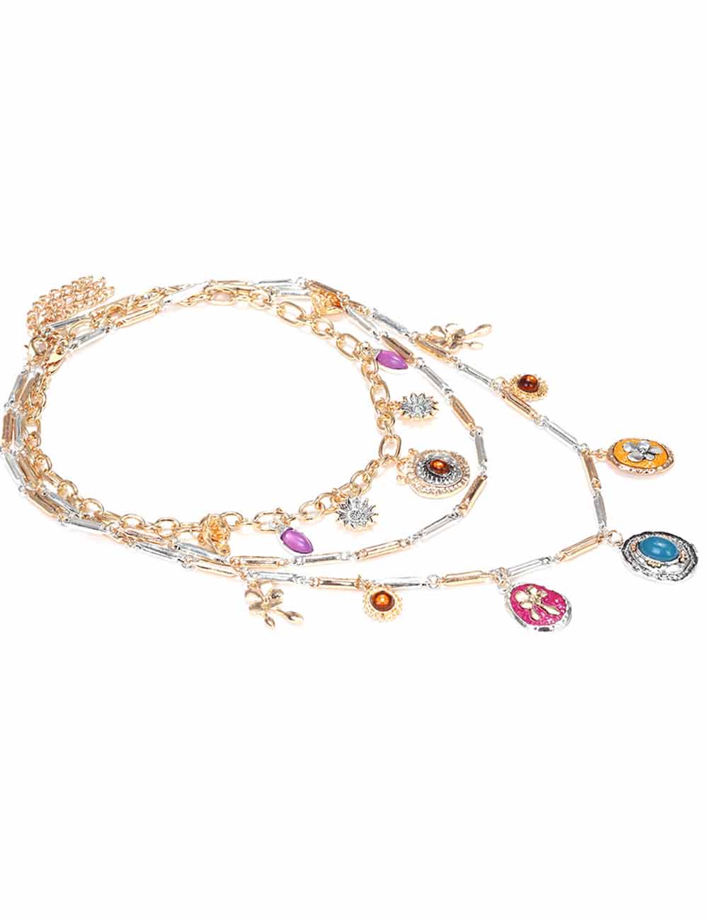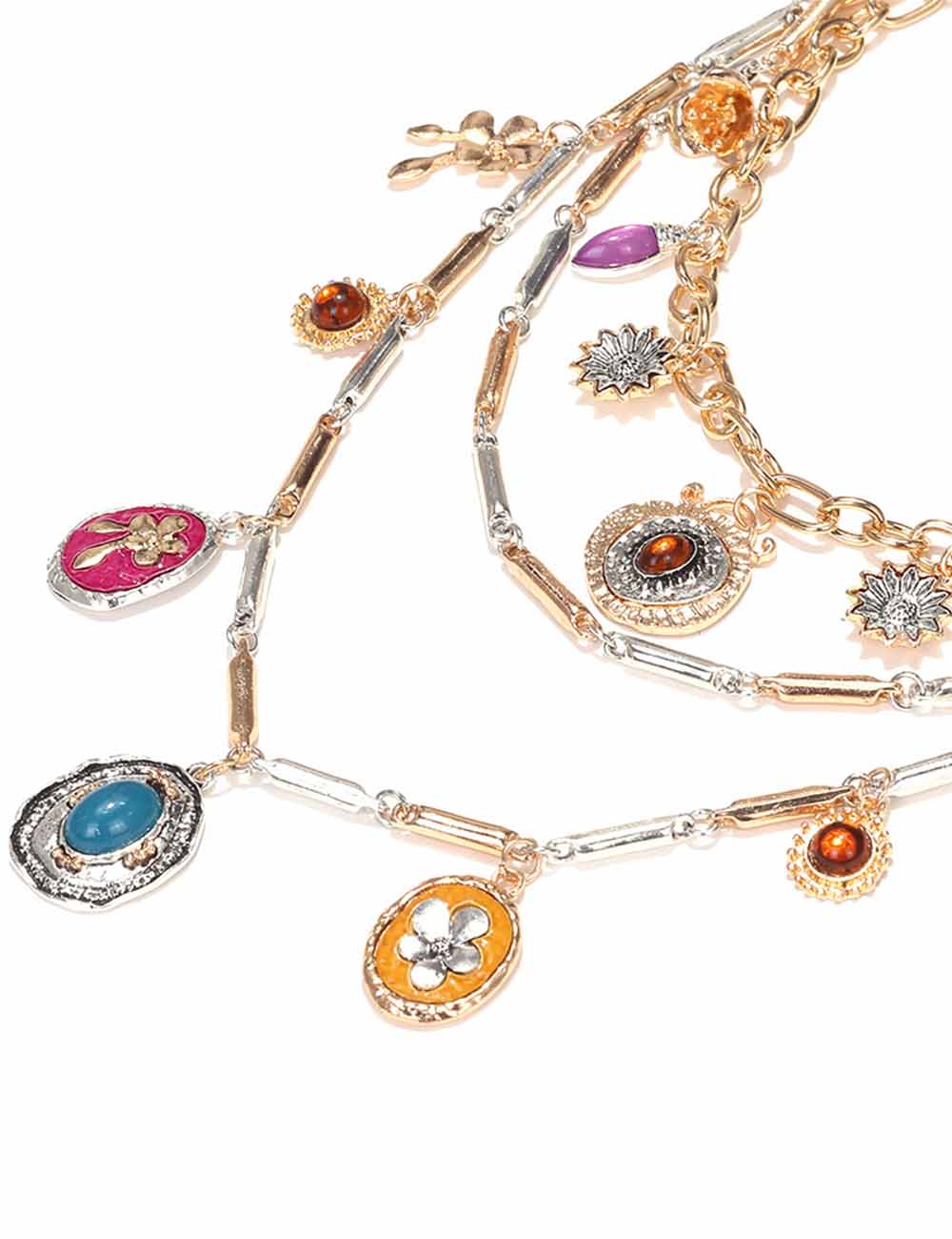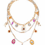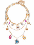 Ladies Vintage Gemstone Flower Pendant 3PCS Necklace Set