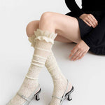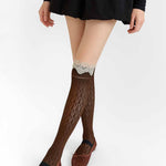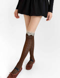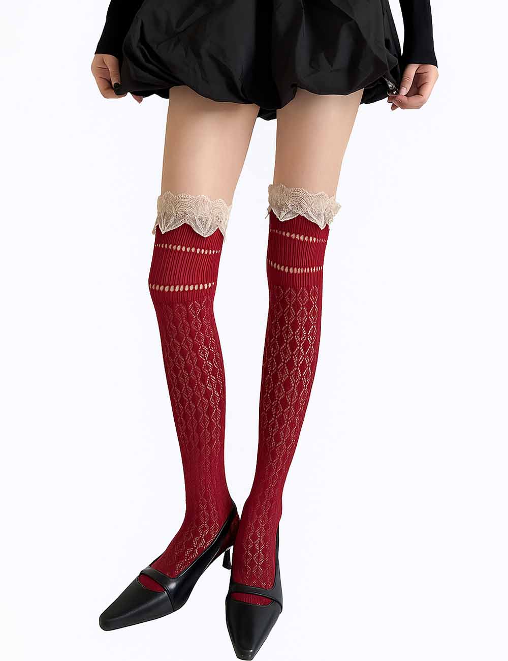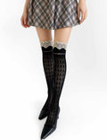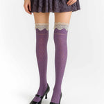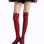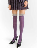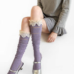 Ladies Vintage Lace Trim Knit Knee High Slouch Socks