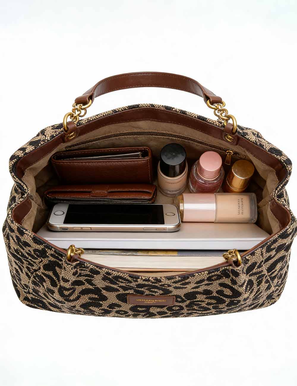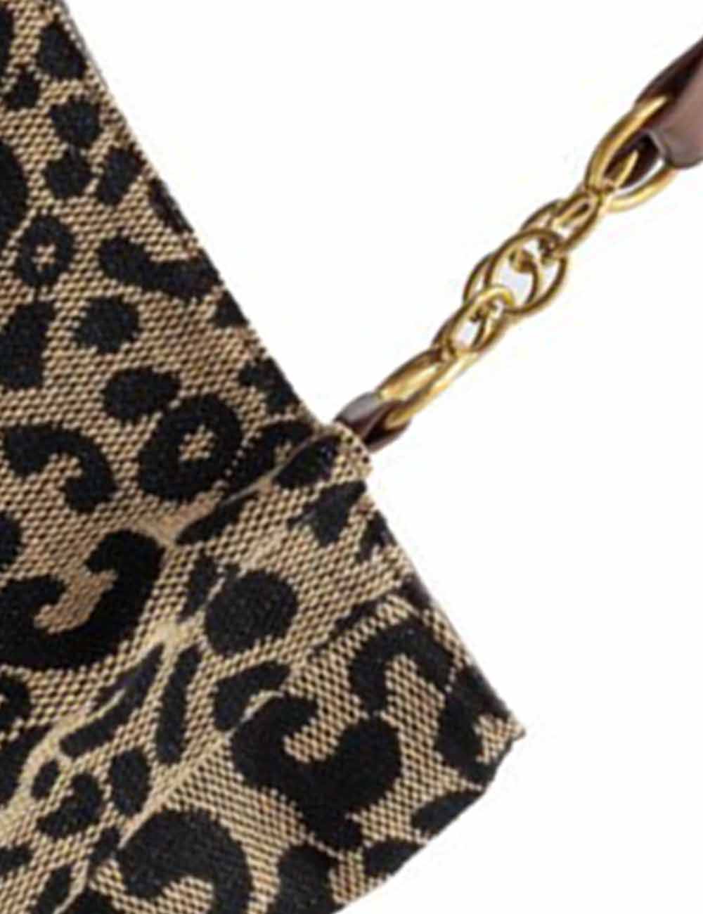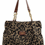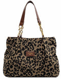 Ladies Vintage Leopard Chain Canvas Shoulder Tote Bag