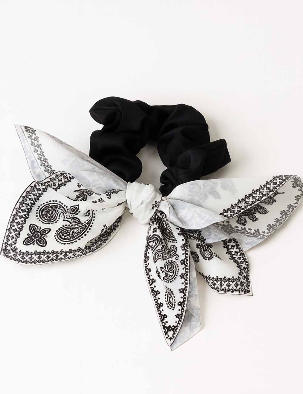 Ladies Vintage Paisley Floral Print Bow Knot Scrunchie