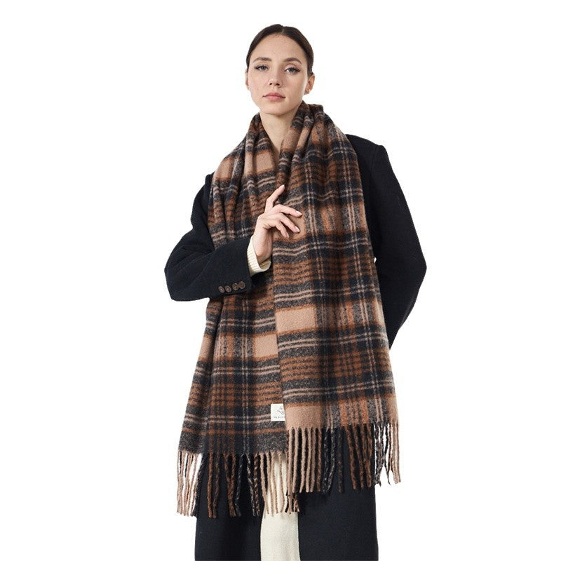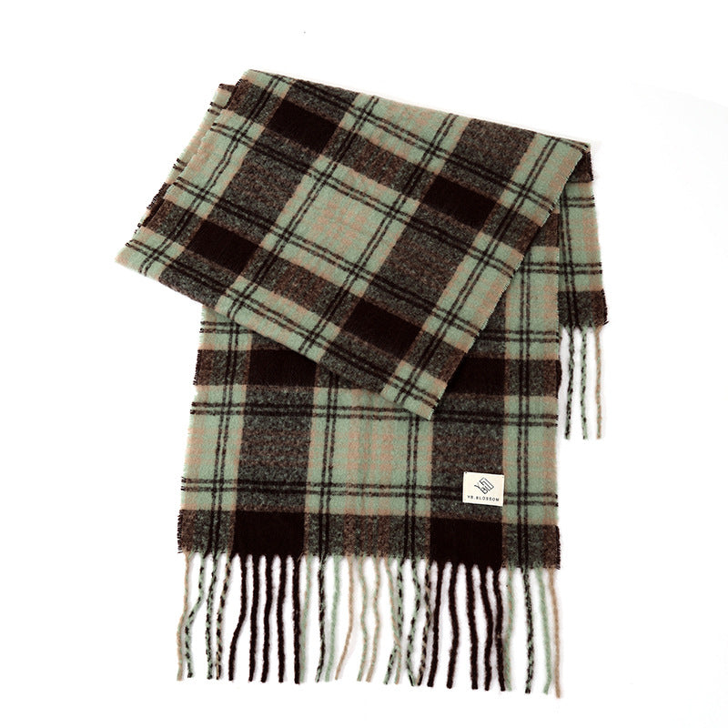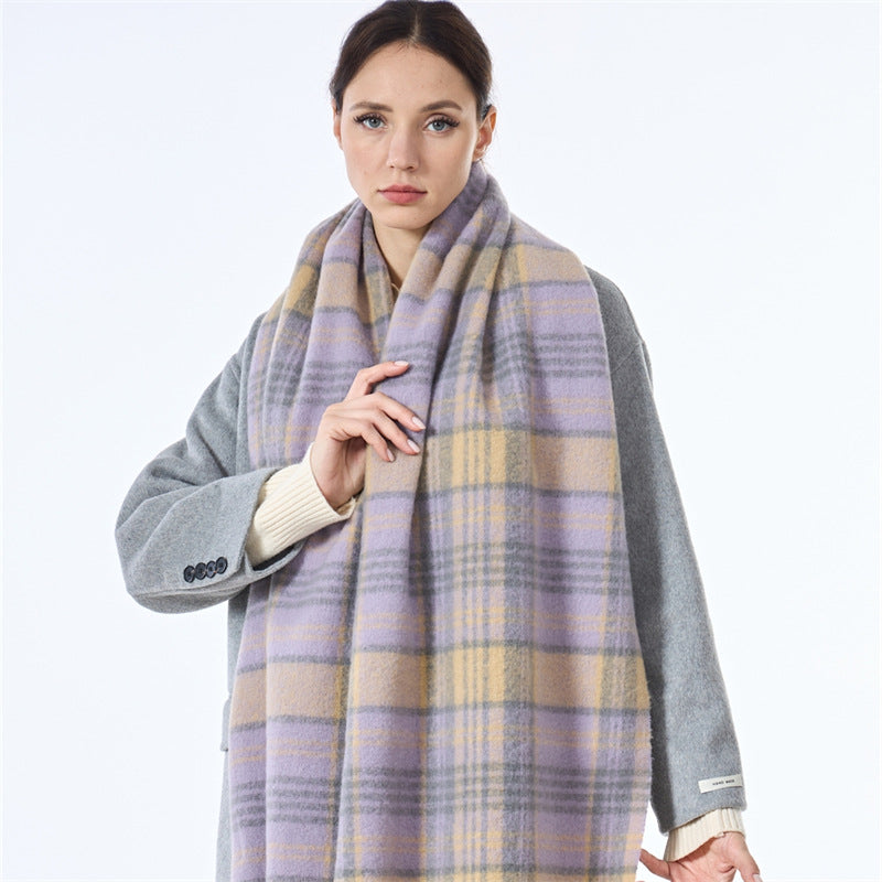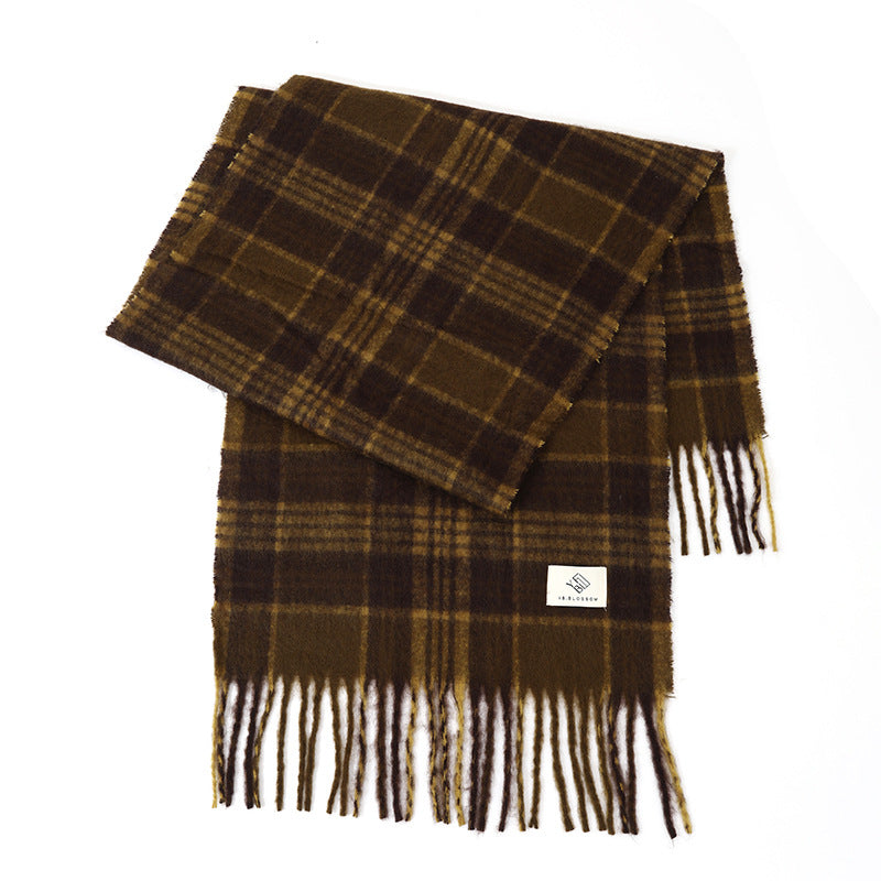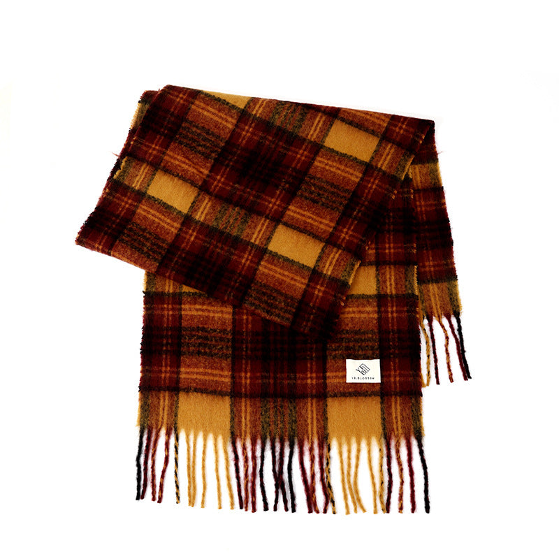 Ladies Vintage Plaid Pattern Mohair Scarf SKAS4204