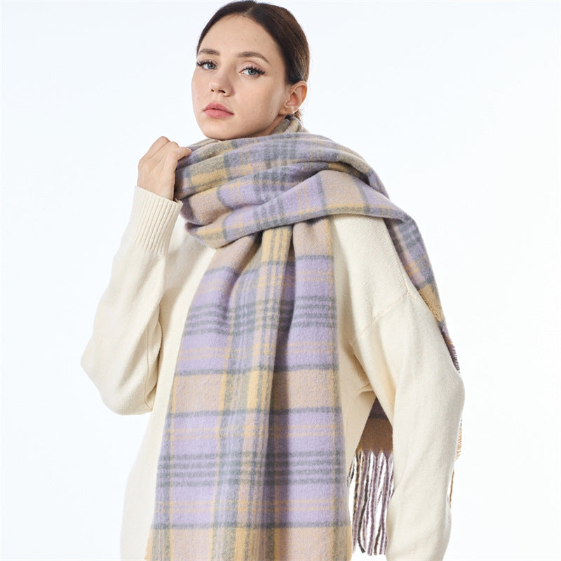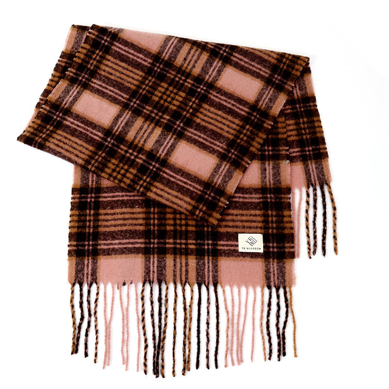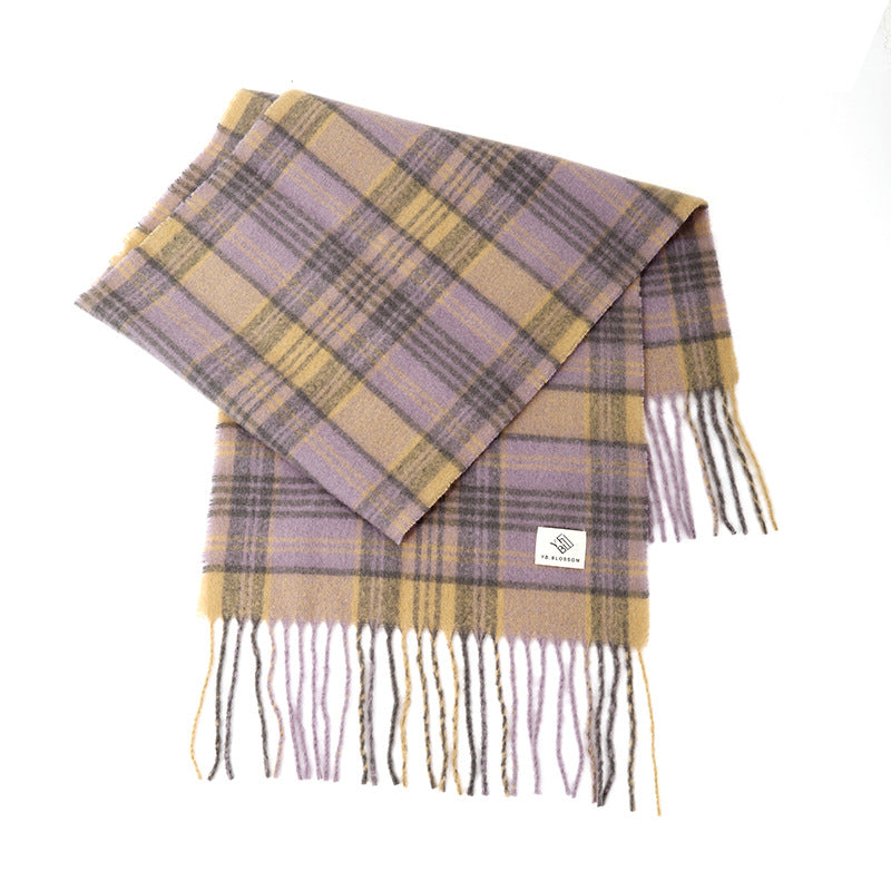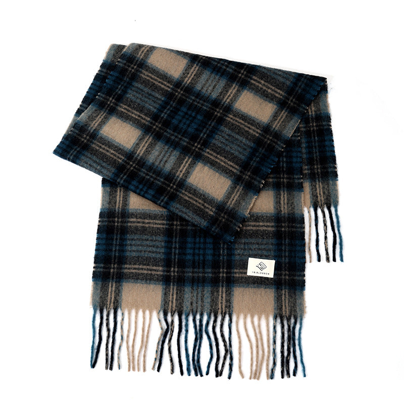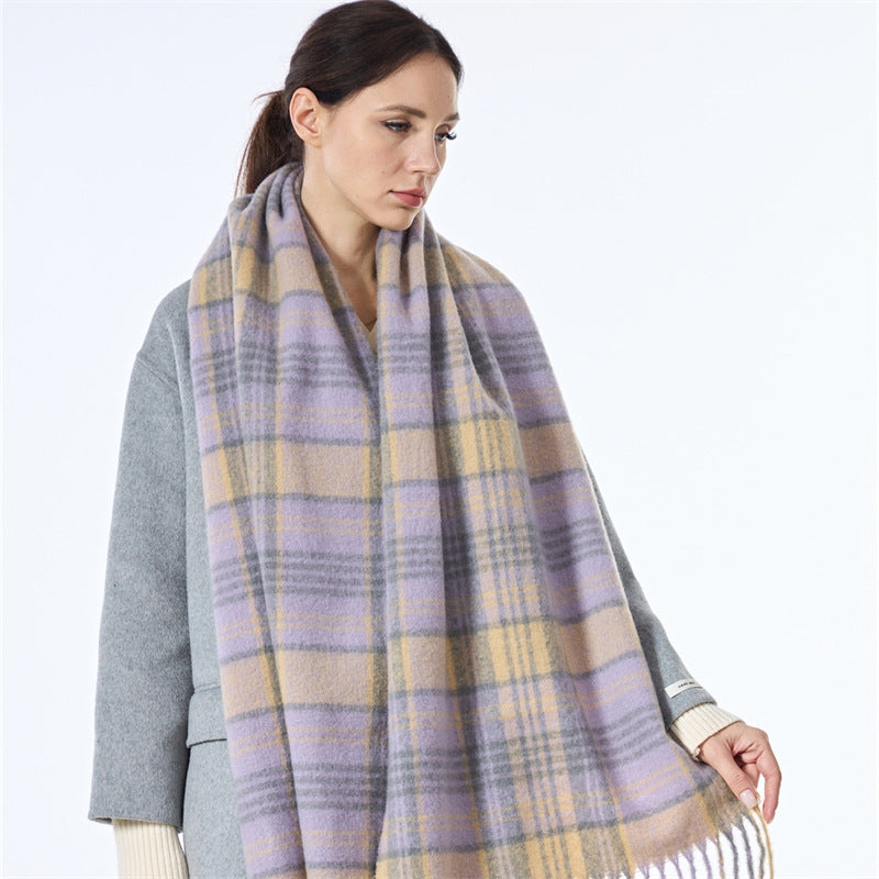 Ladies Vintage Plaid Pattern Mohair Scarf SKAS4204