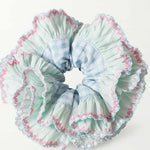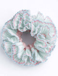 Ladies Vintage Plaid Tiered Floral Hem Scrunchie