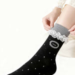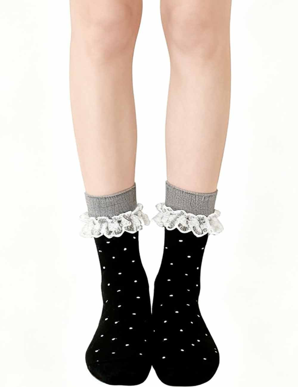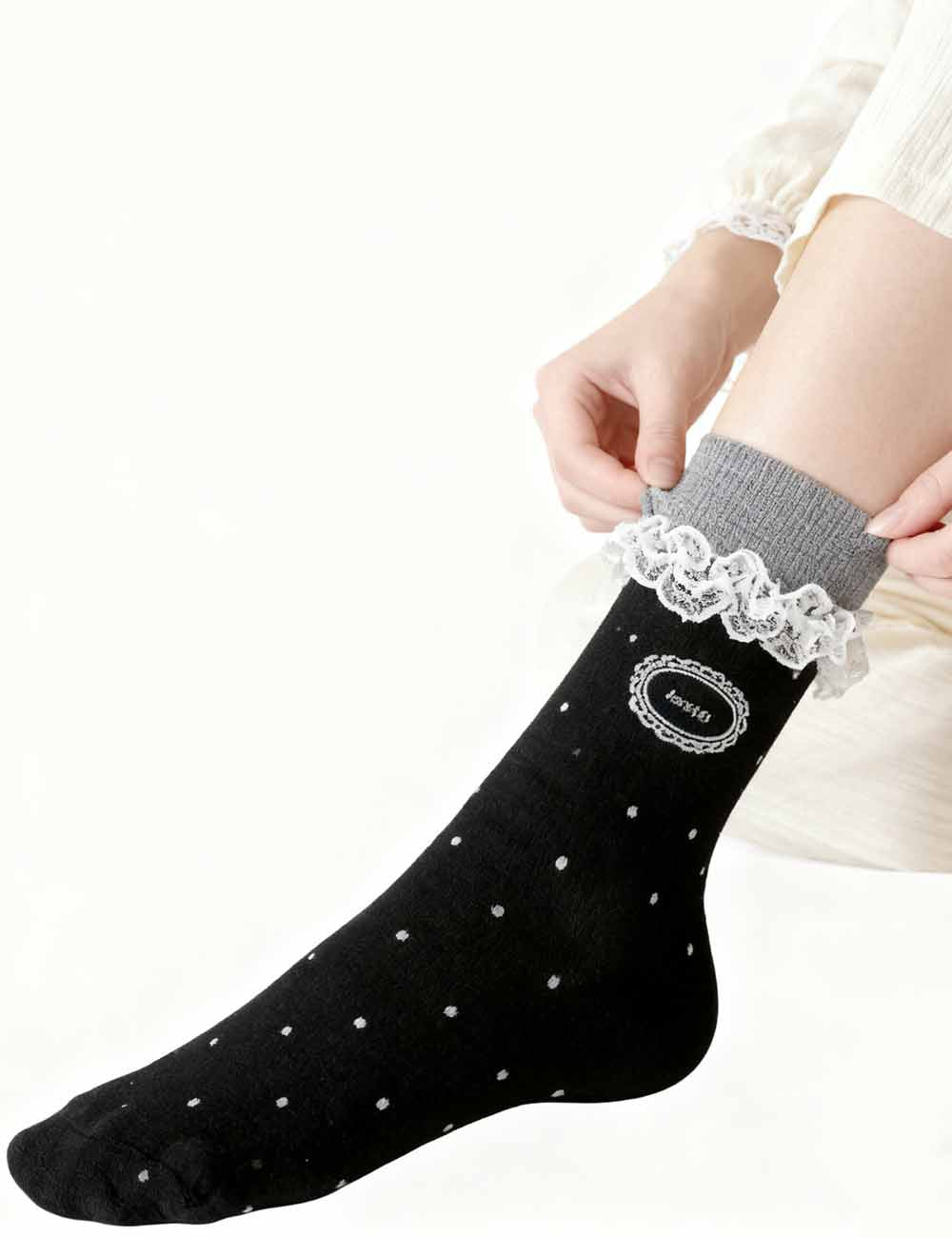 Ladies Vintage Polka Dot Lace Trim Midi Calf Socks