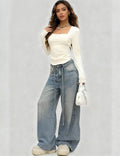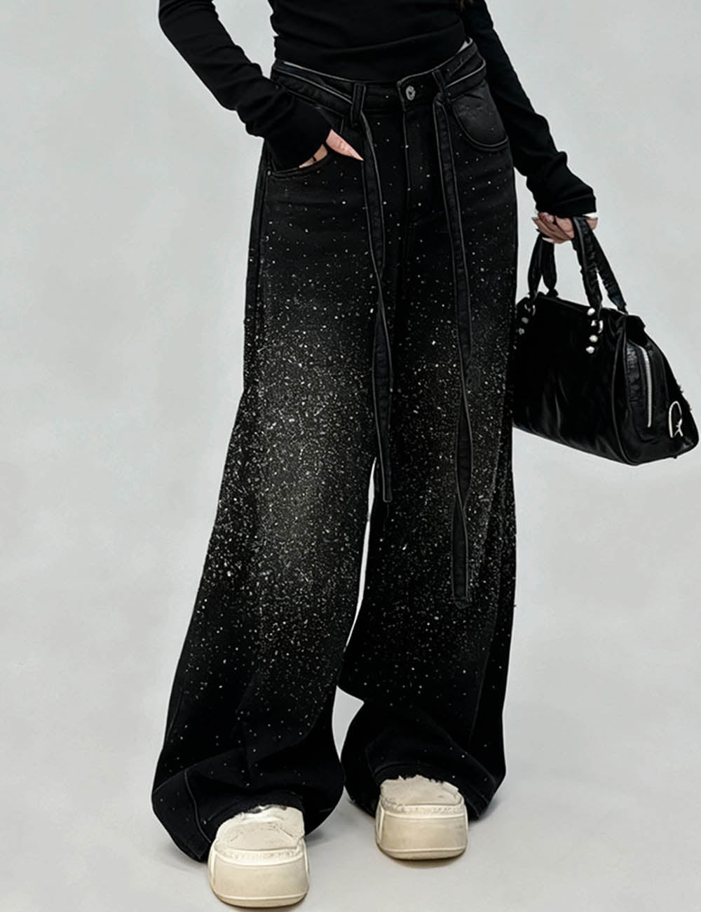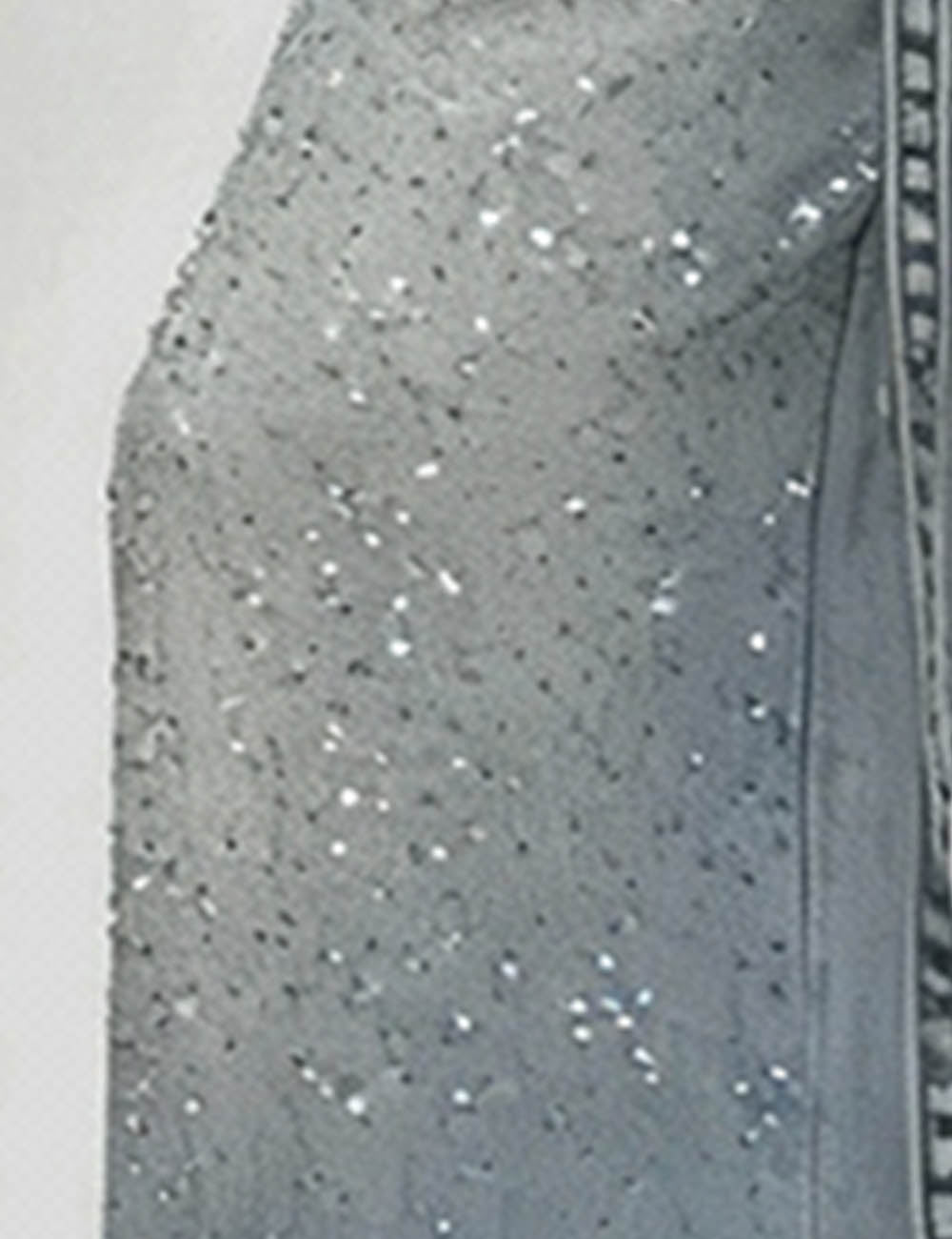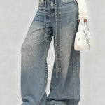 Ladies Vintage Rhinestone Jeans Fleece Lining Denim Pants