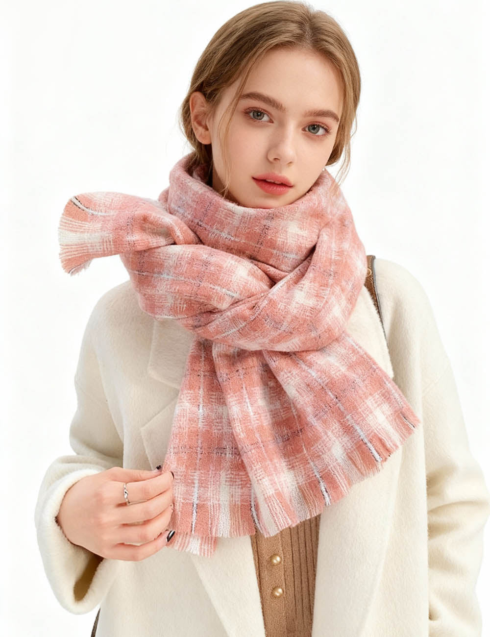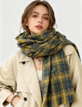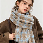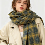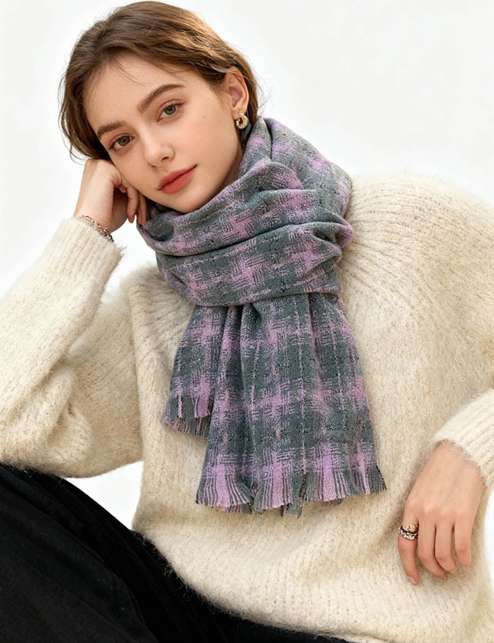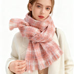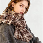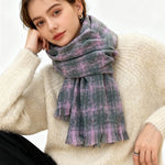 Ladies Warm Color Block Plaid Tassel Knit Scarf