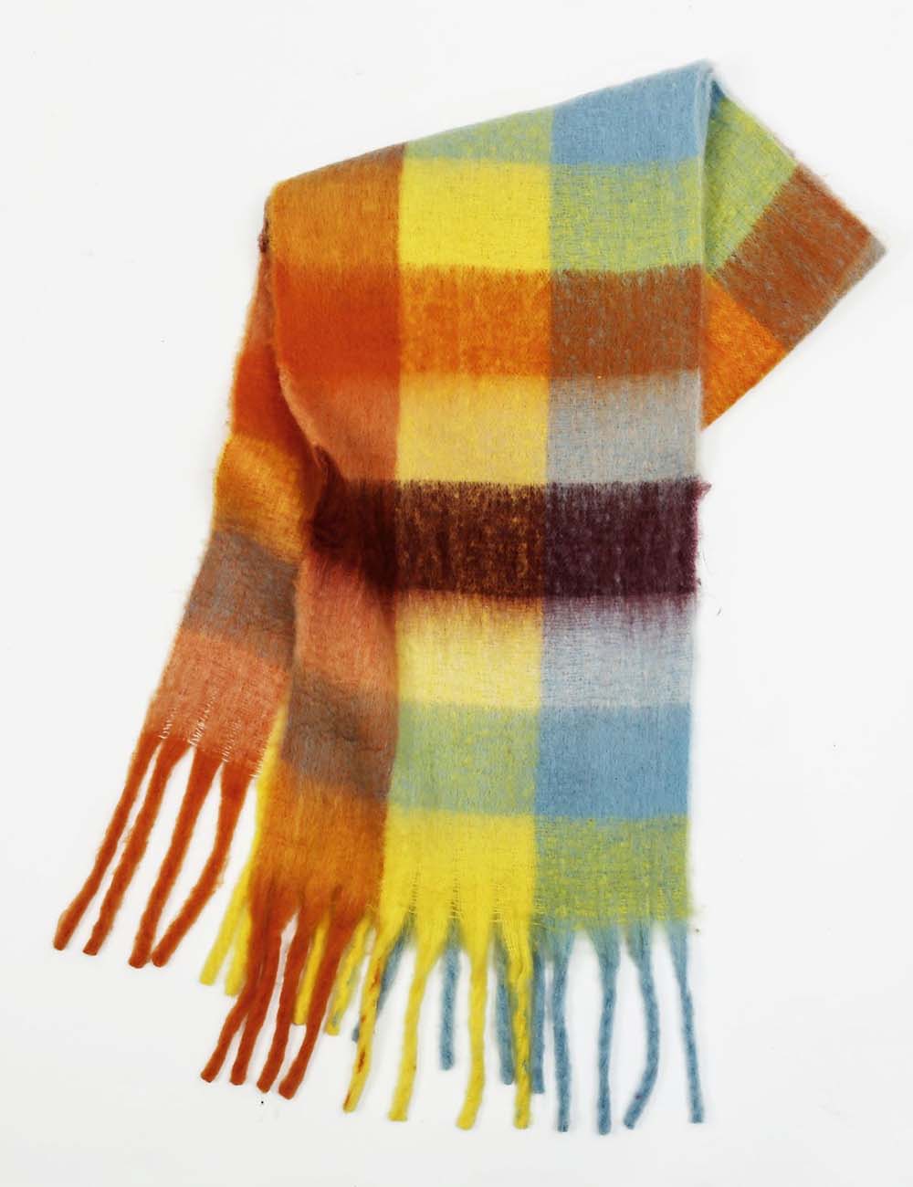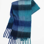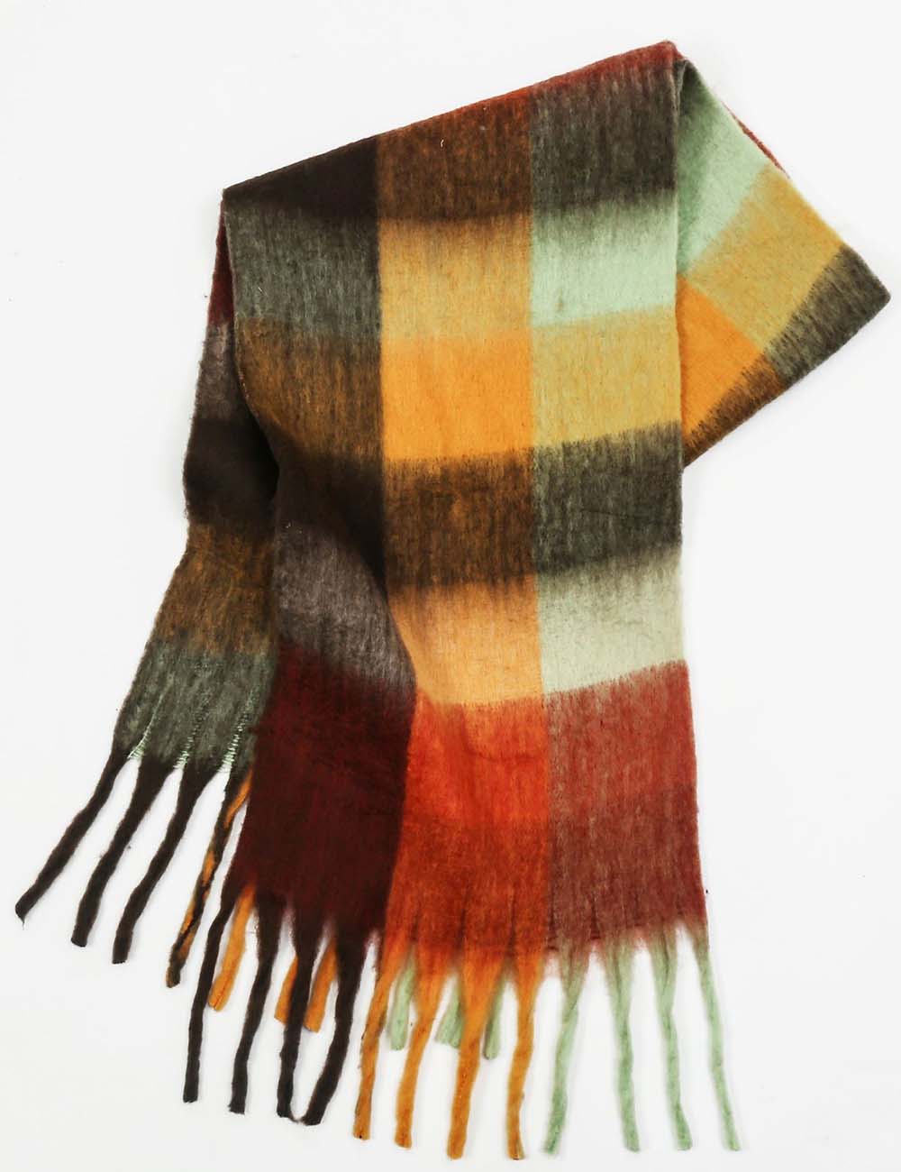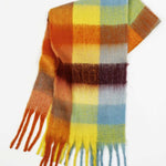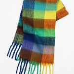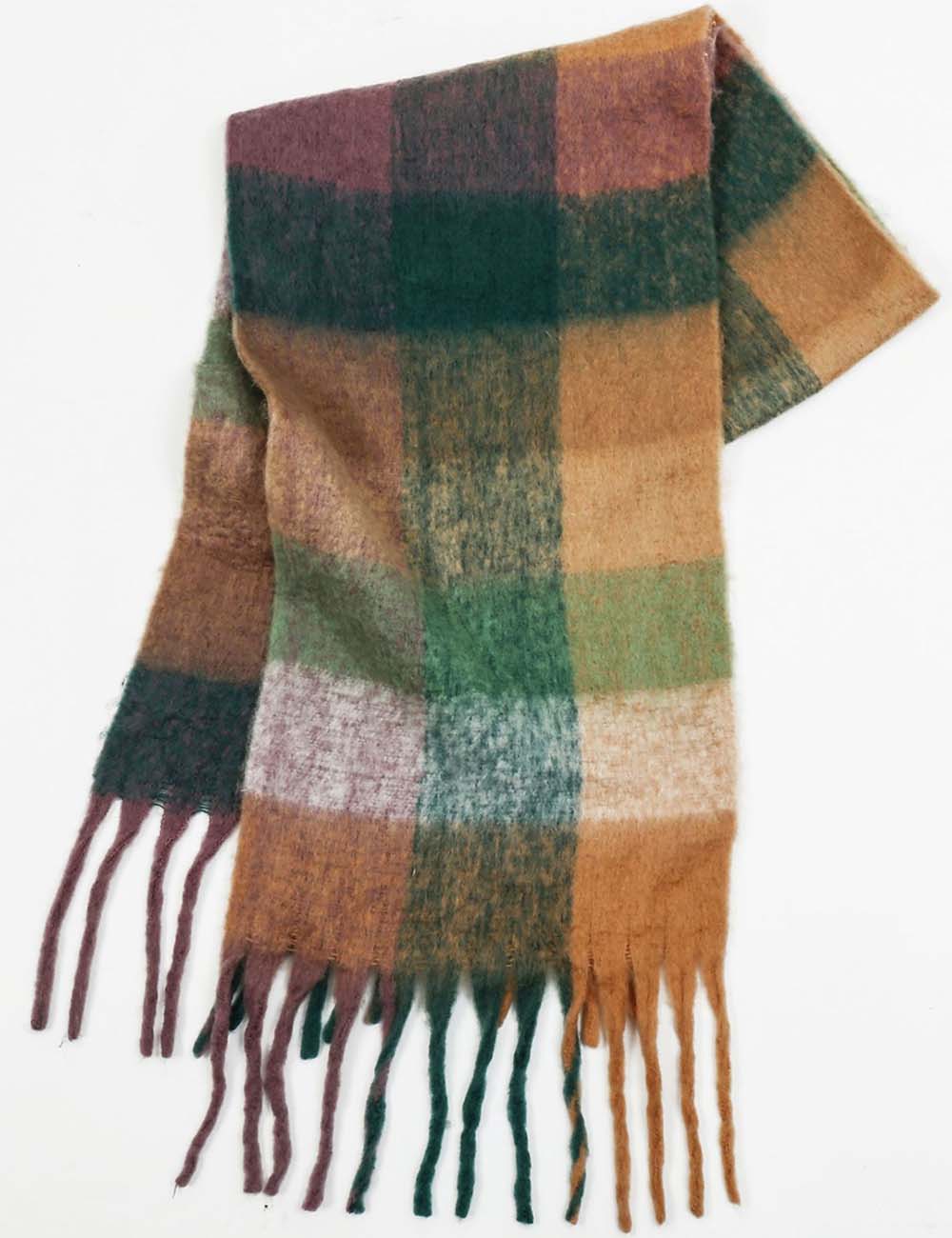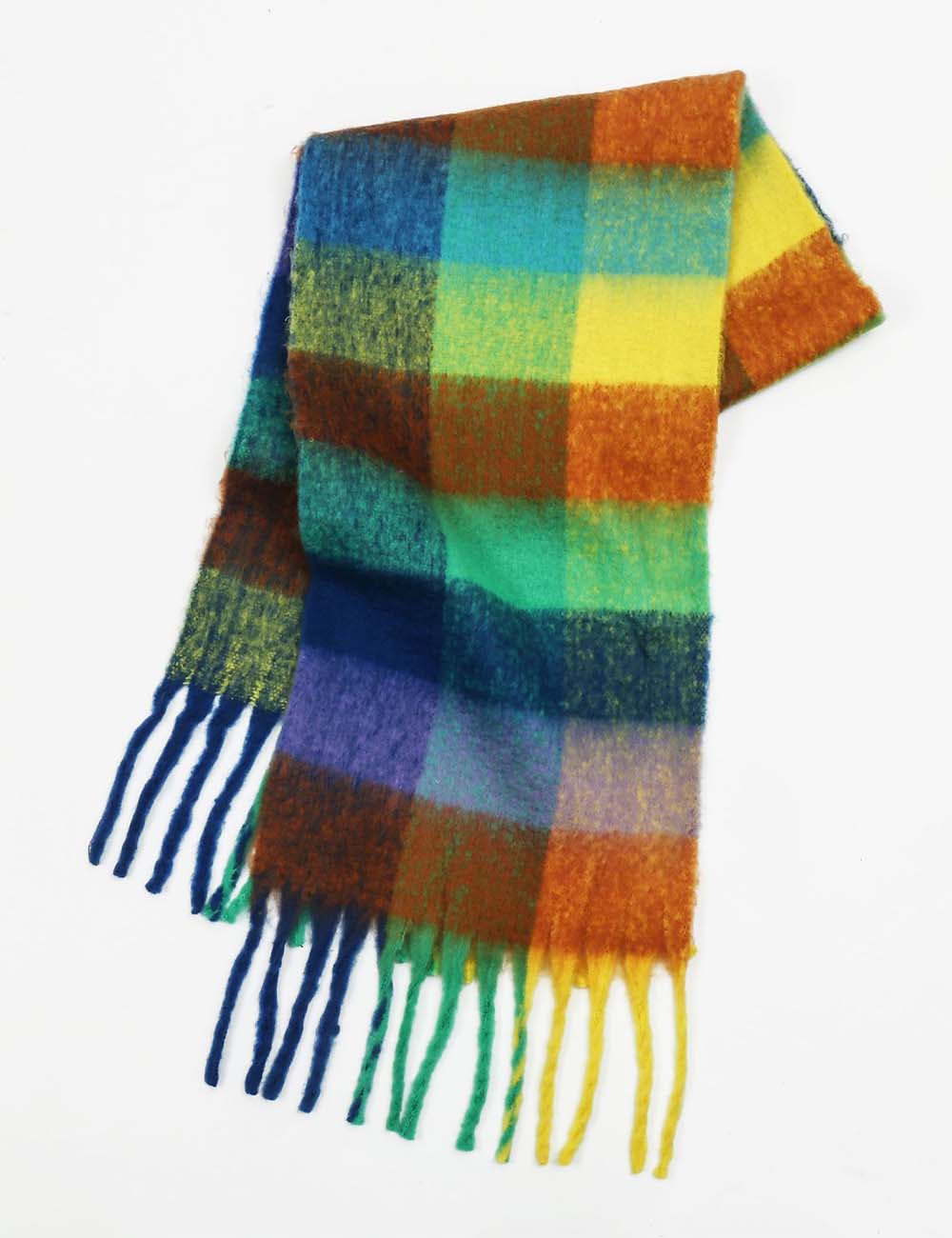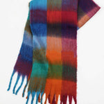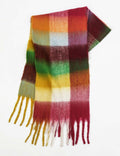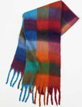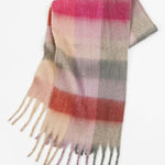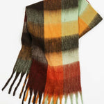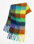 Ladies Warm Colorful Plaid Fringe Knit Scarf
