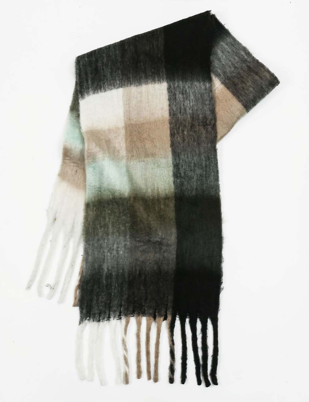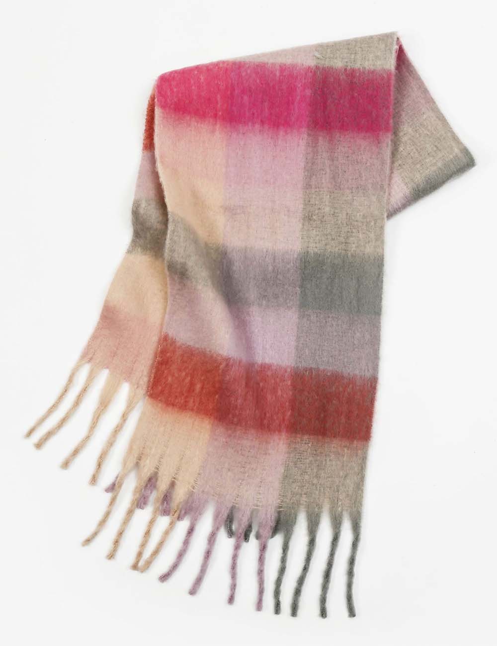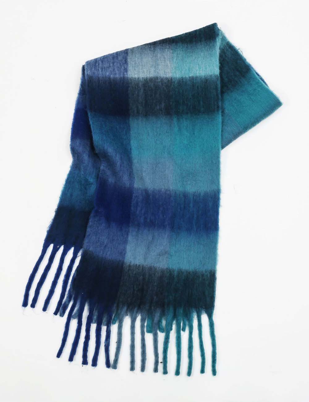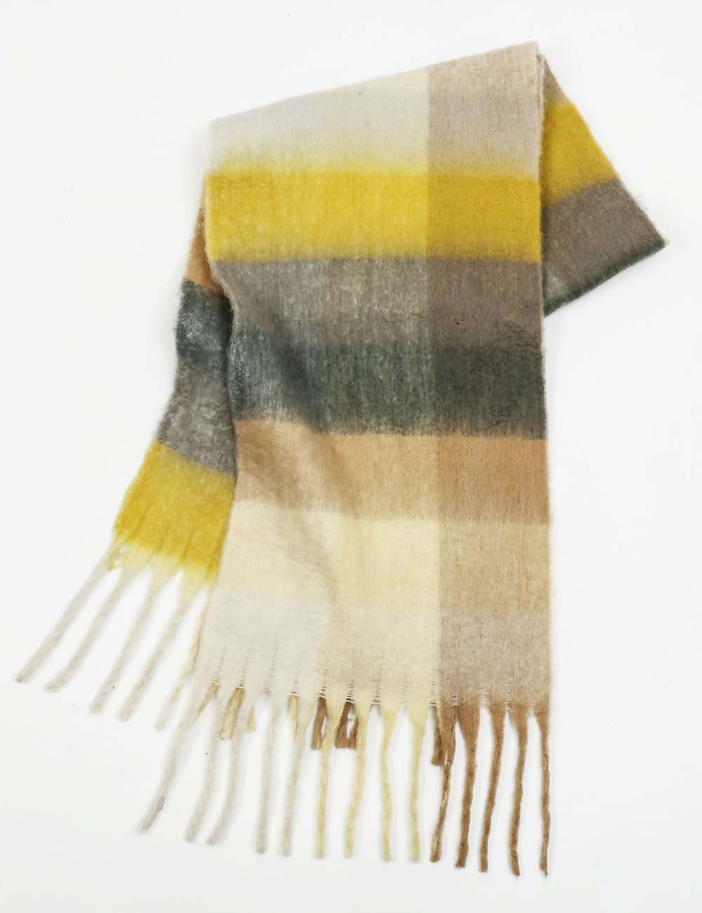 Ladies Warm Colorful Plaid Fringe Knit Scarf