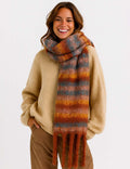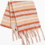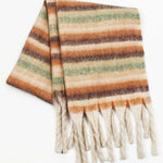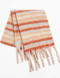 Ladies Warm Multi Color Striped Fringe Shawl Knit Scarf