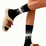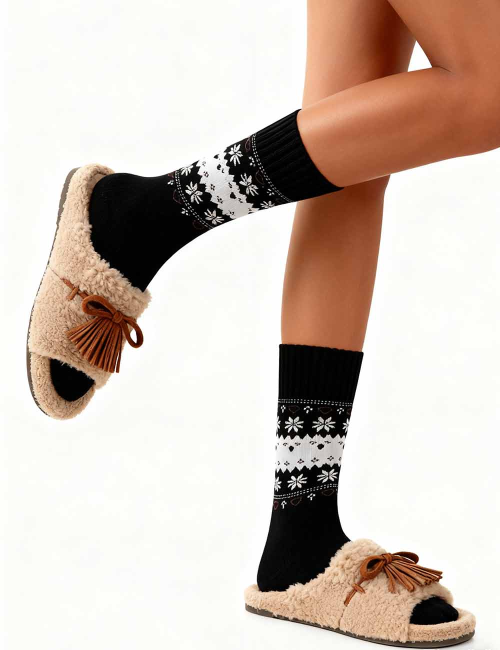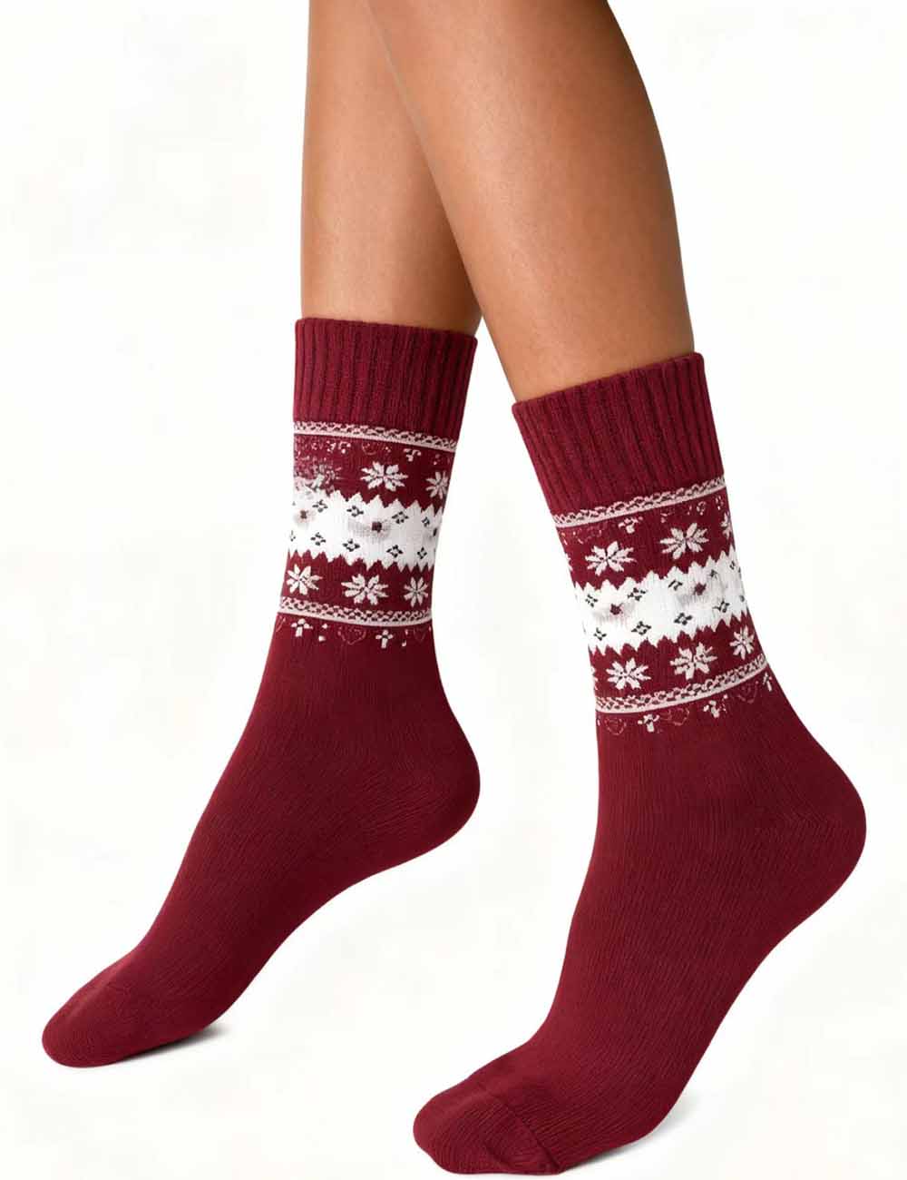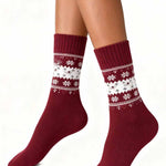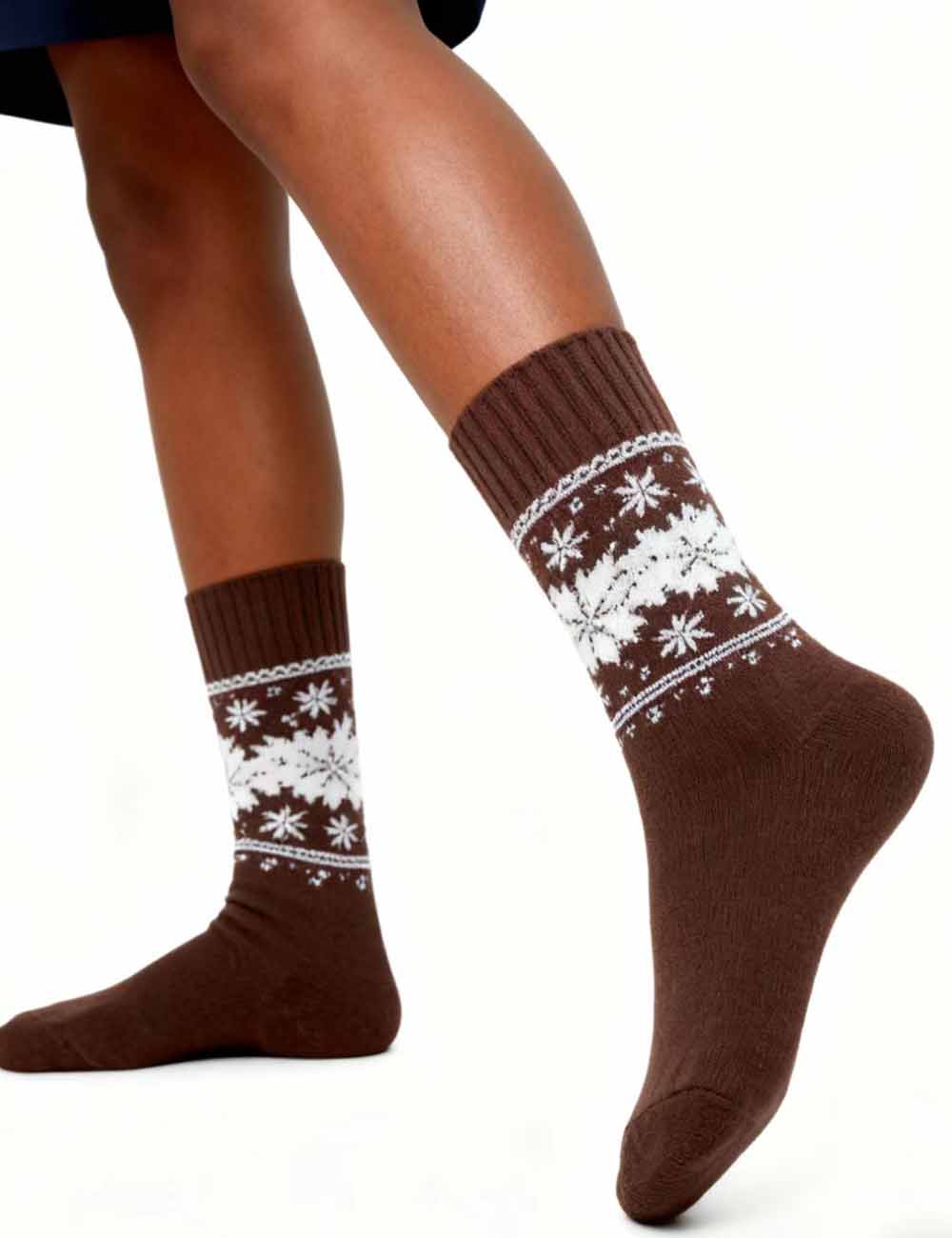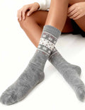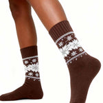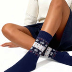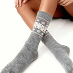 Ladies Warm Wool Blend Fair Isle Snowflake Knit Midi Calf Socks