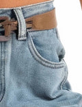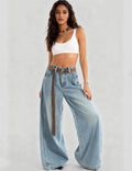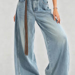 Ladies Washed Fleece Lined Wide Leg Denim Pants