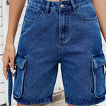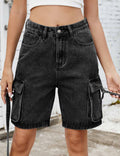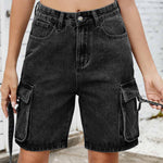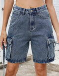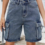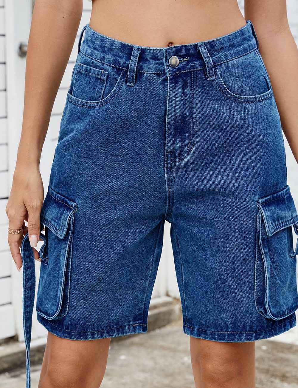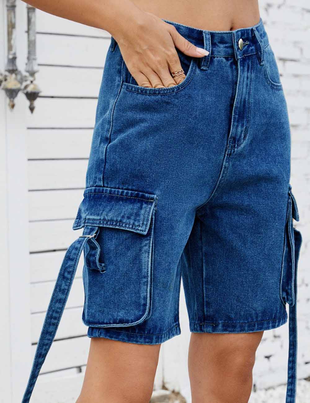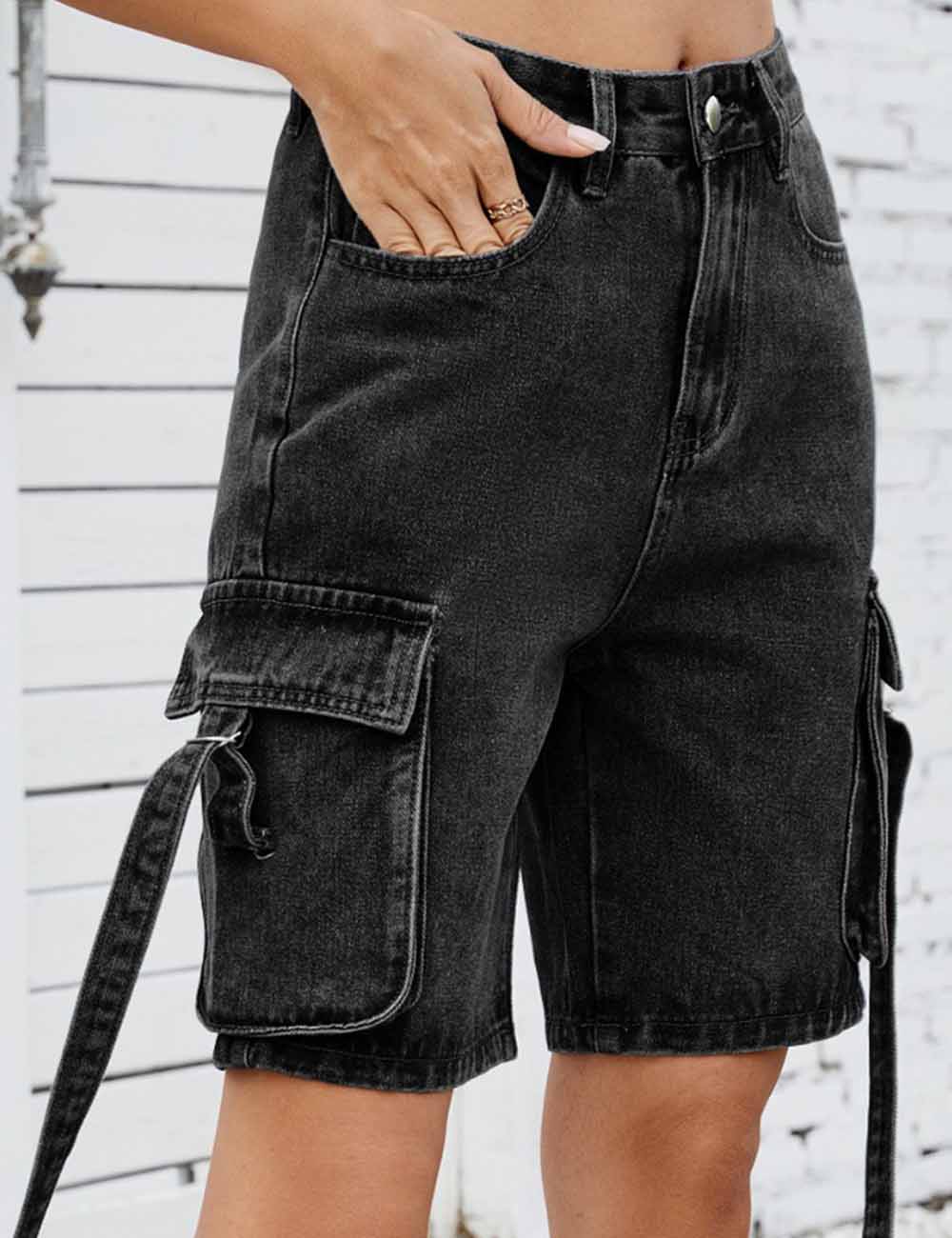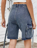 Ladies Washed Ribbon Straight Leg Denim Shorts 8SKP5X44