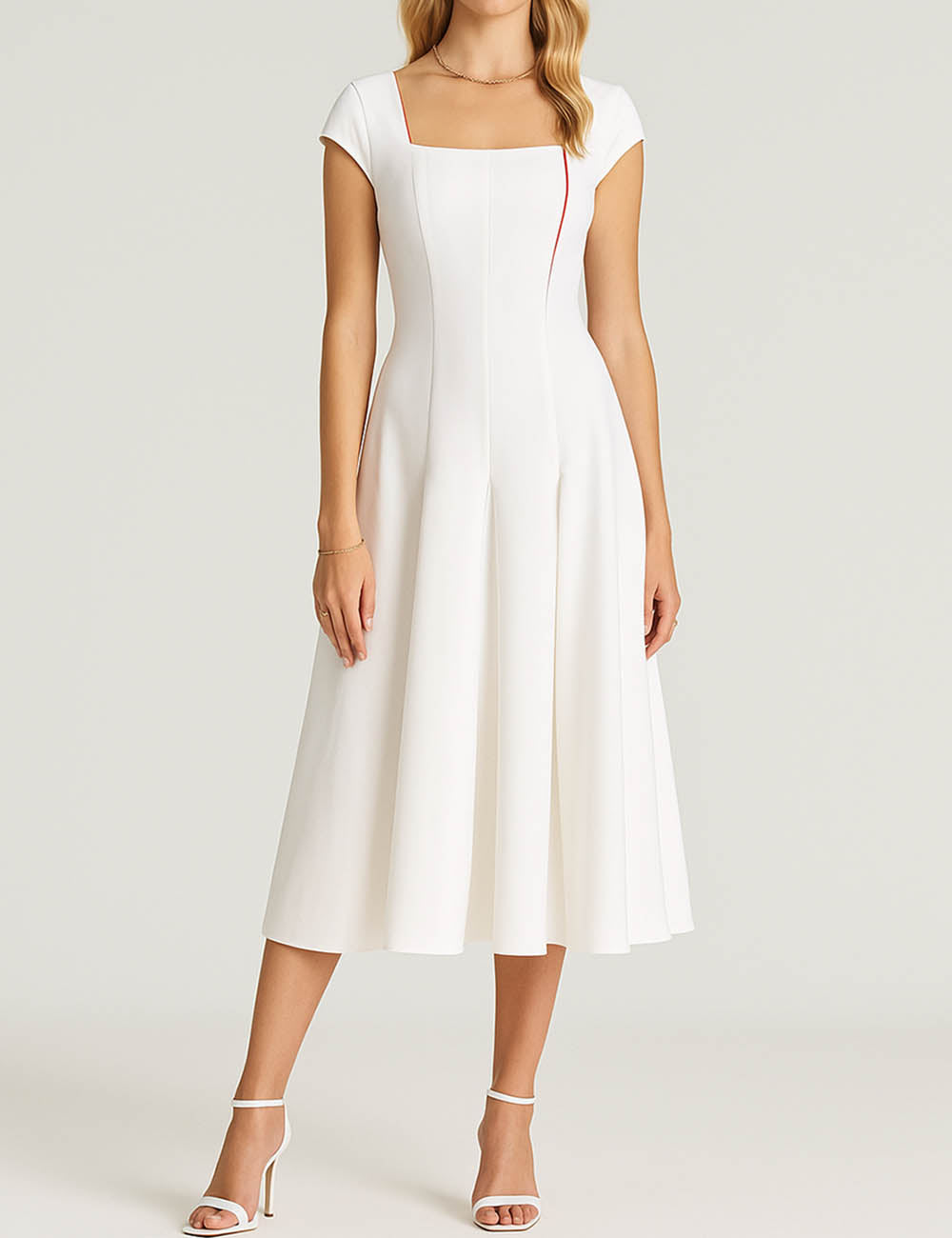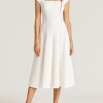 Ladies White Square Neck Cap Sleeves Midi Dress