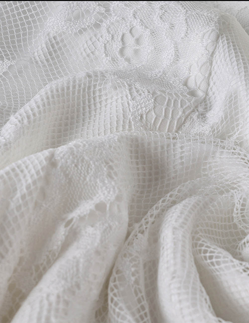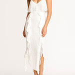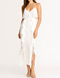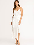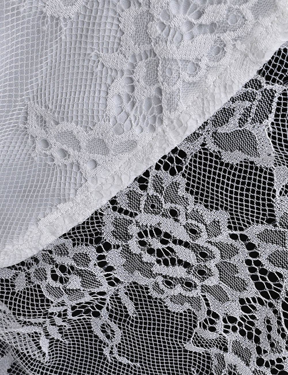 Ladies White V-Neck Ruffle Dress Lace Splice Split Cami Maxi Dress