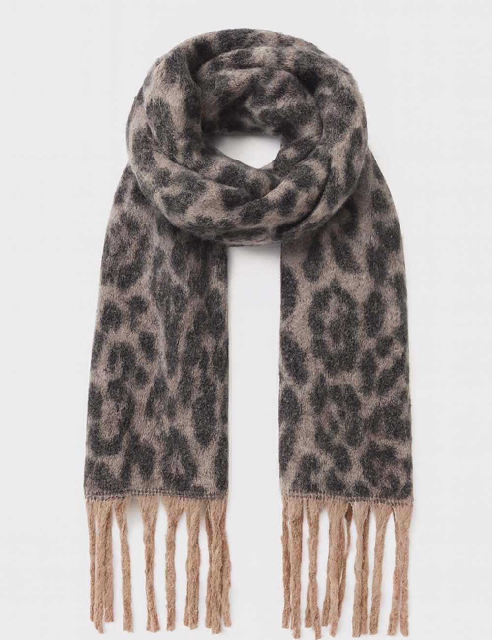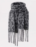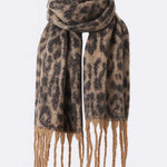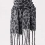 Ladies Winter Leopard Fringe Knit Shawl Scarf