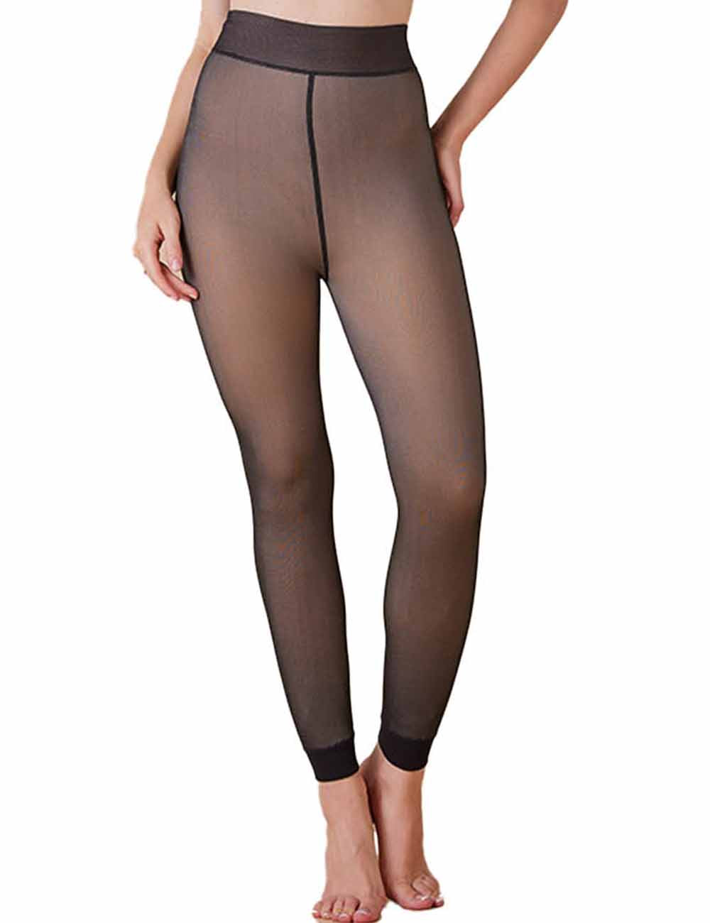 Ladies Winter Warm Fake Sheer Fleece Lined Footless Tights