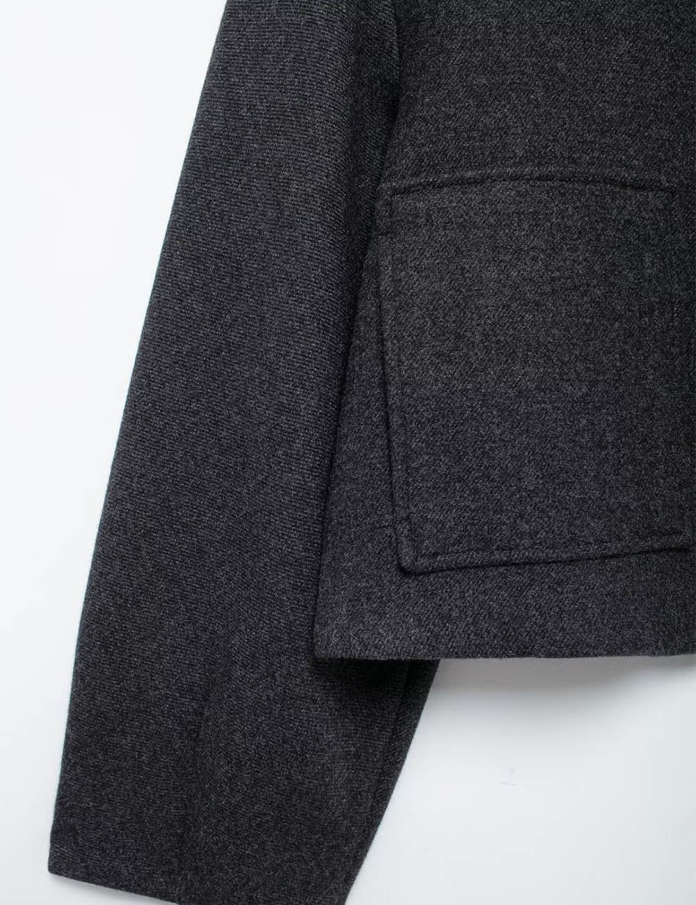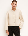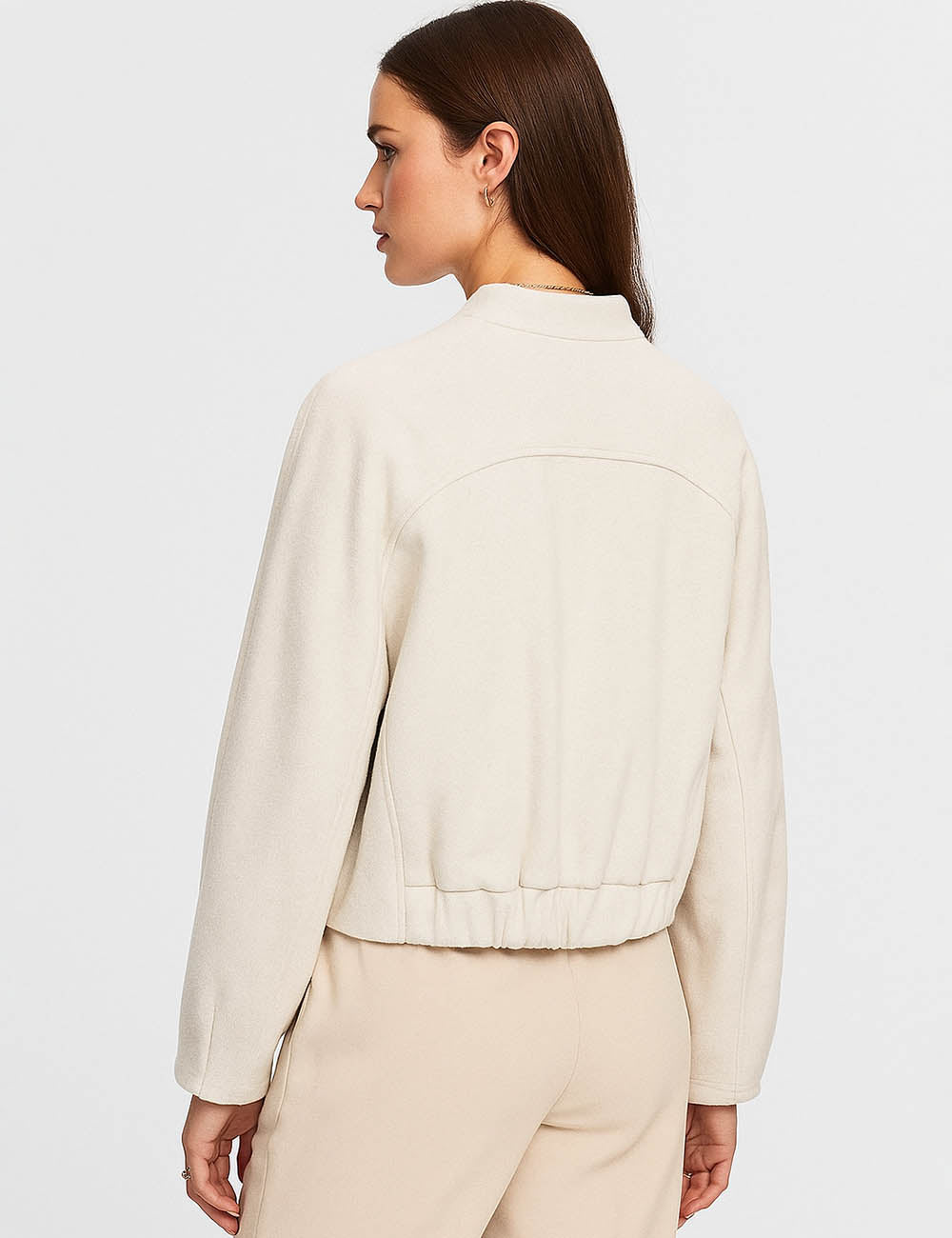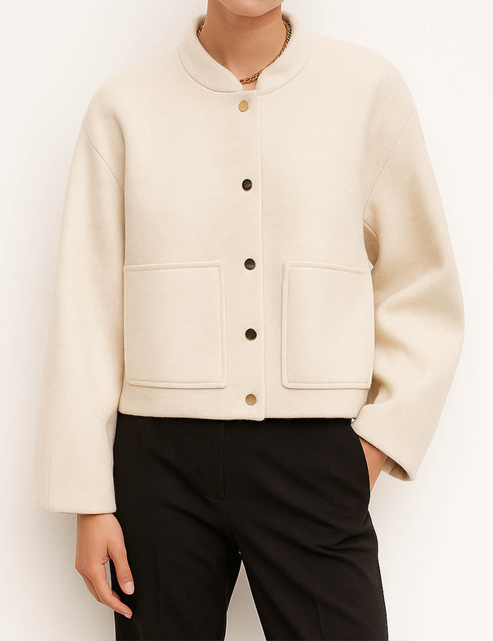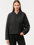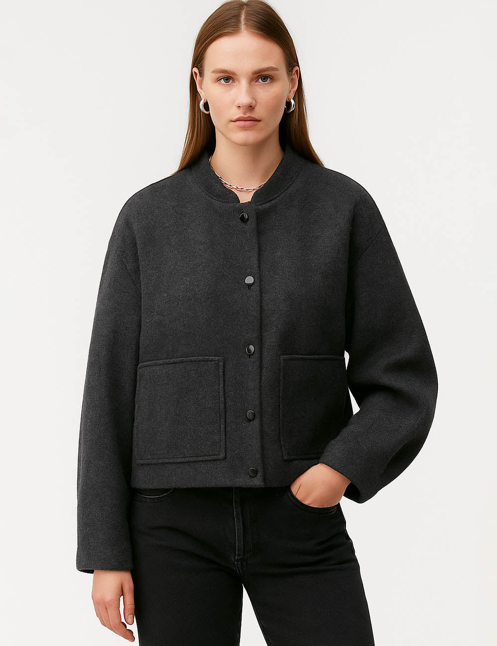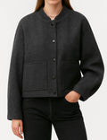 Ladies Wool Blend Stand Collar Button Front Bomber Jacket