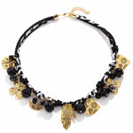 Ladies Woven Knotted Moon & Heart Pendants Necklace