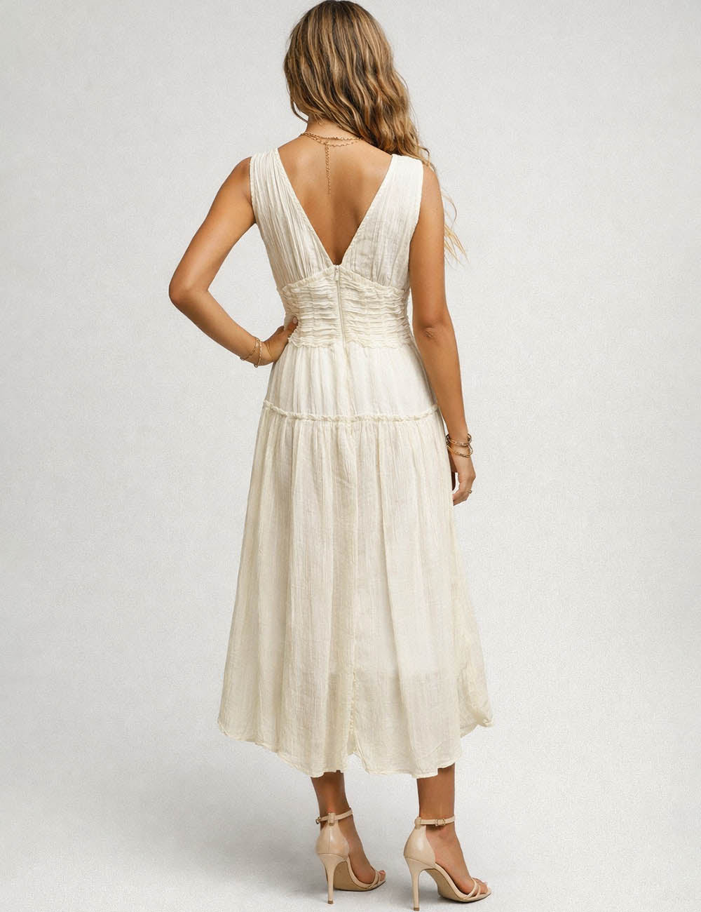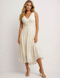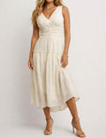 Ladies Wrap V-Neck Ruched Waist Sleeveless Midi Dress