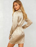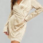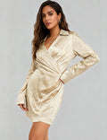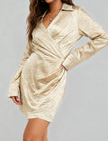 Ladies Wrap V-Neck Shirt Collar Ruched Mini Dress