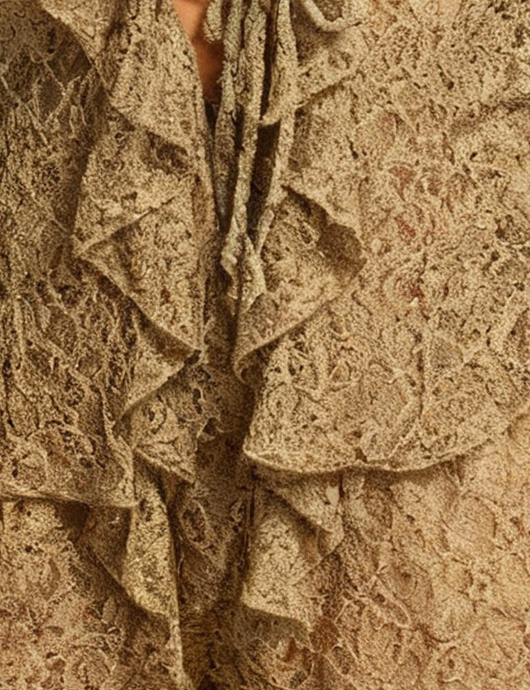 * Ruffle Trim Neckline and Cuffs
