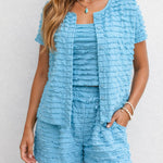 Ladies Wrinkle Sleeveless Top Button Cardigan Shorts 3PCS Set