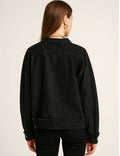 Ladies Zipper Collar Frayed Edge Long Sleeves Denim Jacket
