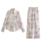 Laides Floral Prinr Shirt and Pants 2PCS Set SKST50327