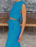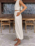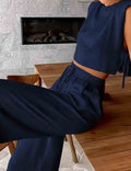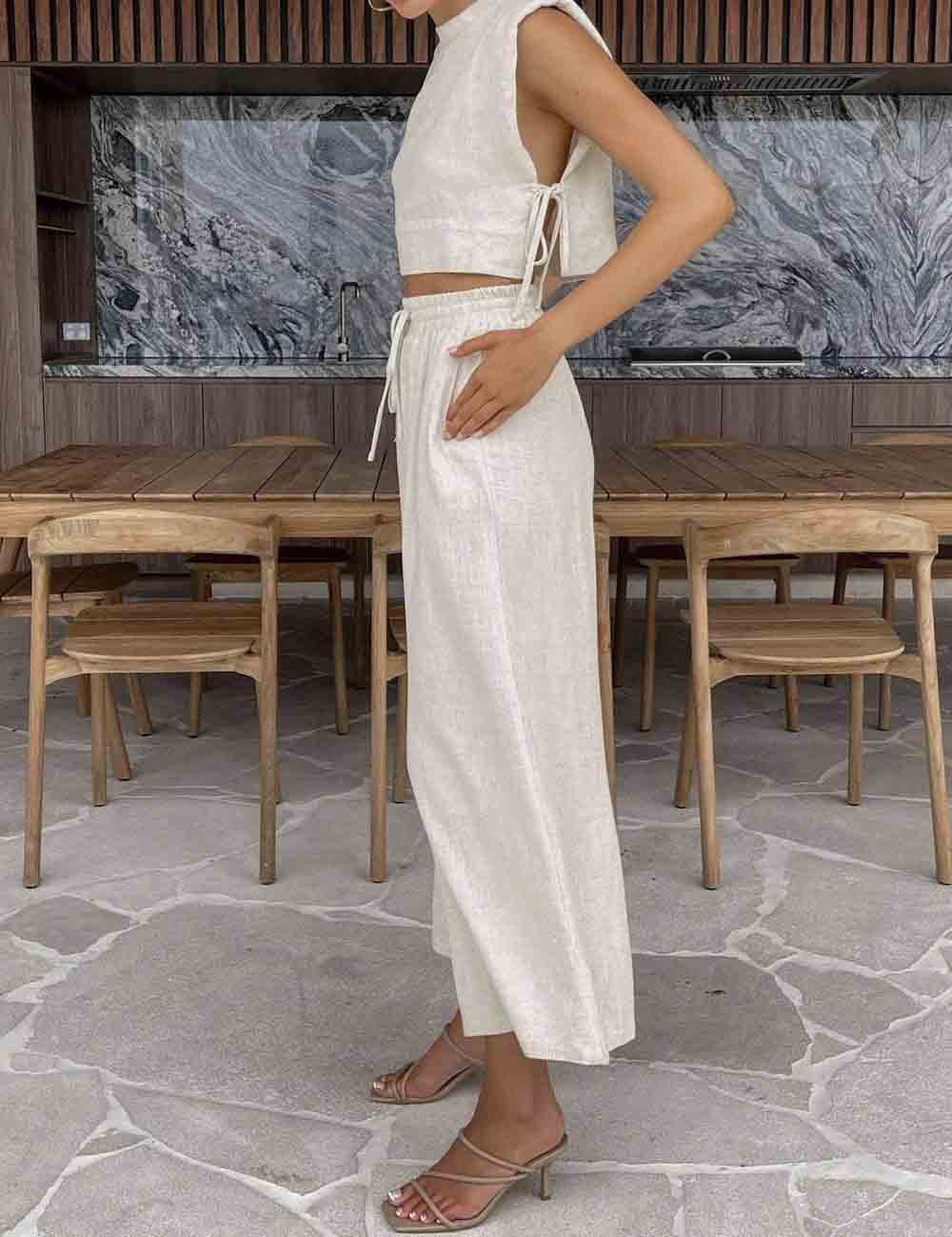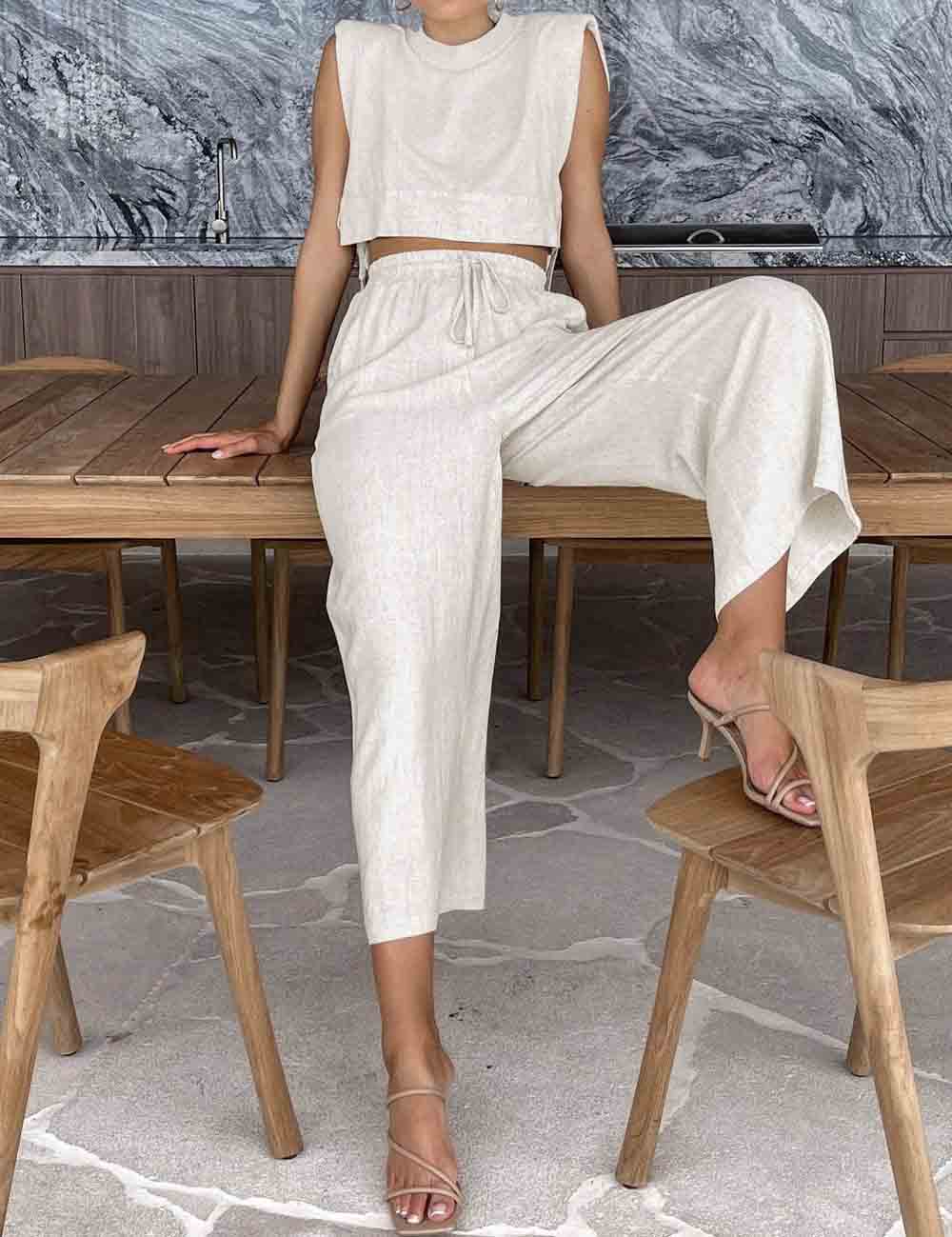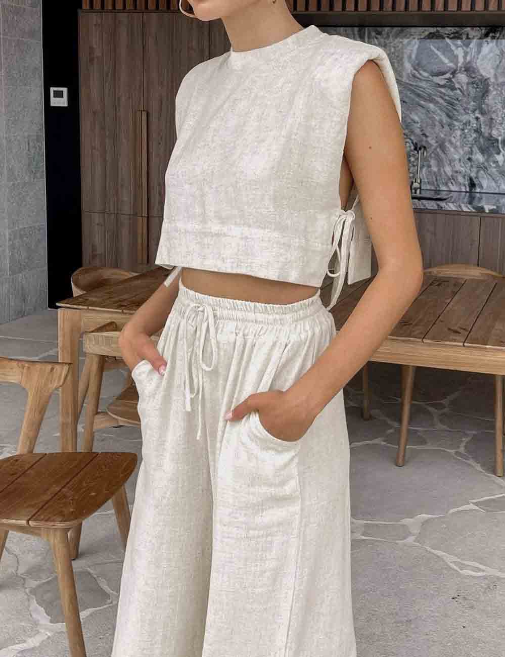 Linen Sleeveless Crop Top and Pants 2PCS Set 2TZ2186