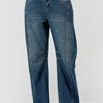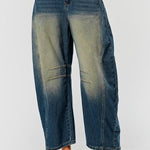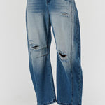 Slouchy Mid Rise Barrel Denim Pants SKP522
