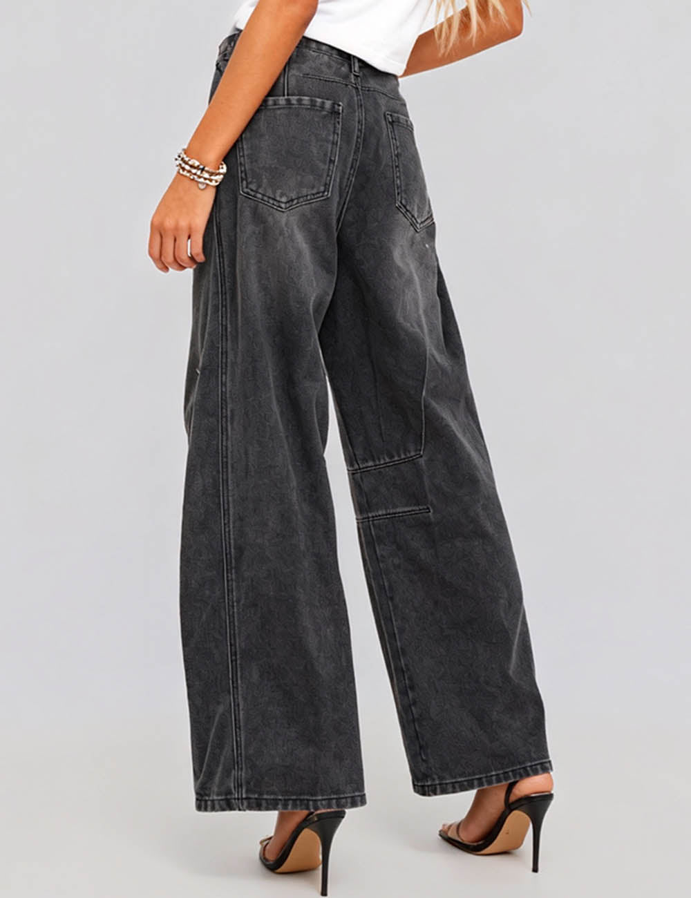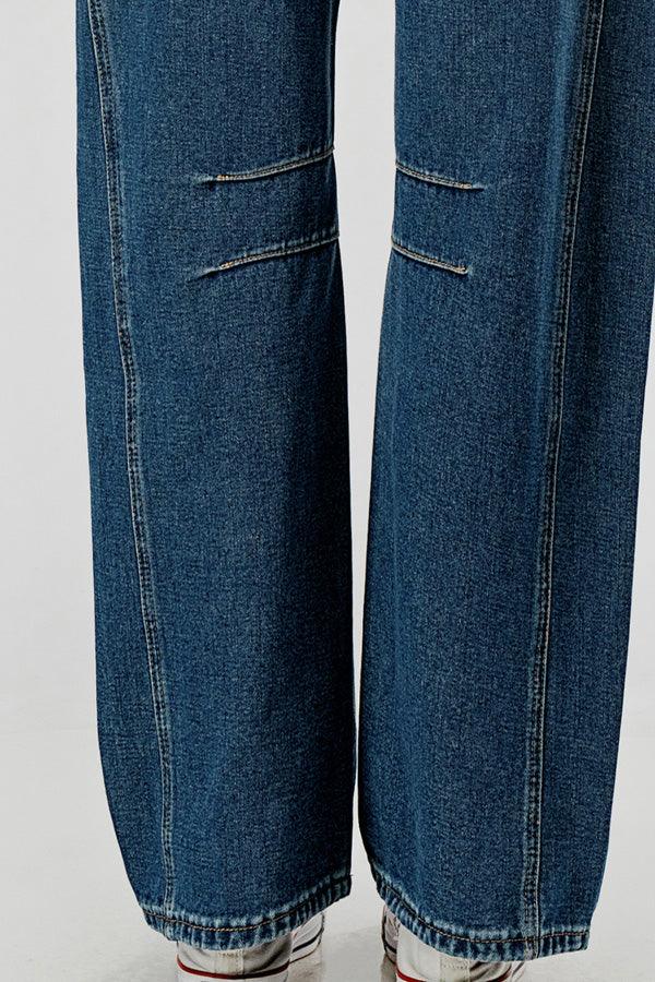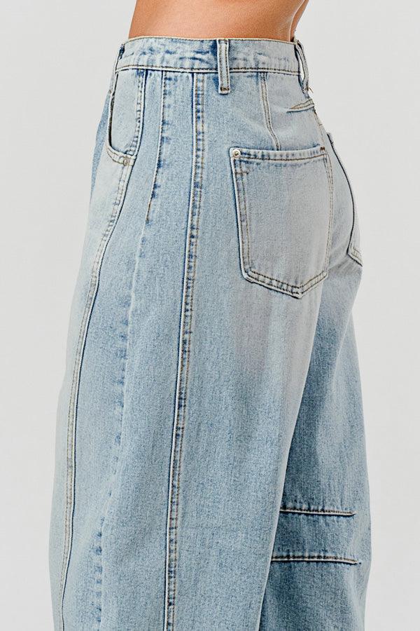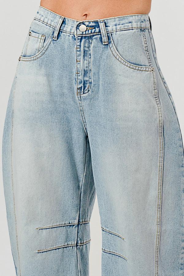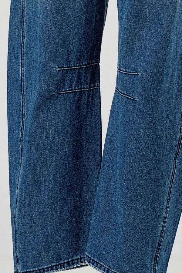 Relaxed Mid Rise Barrel Denim Pants SKP522
