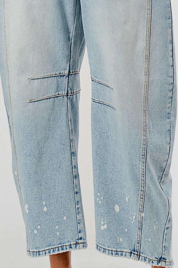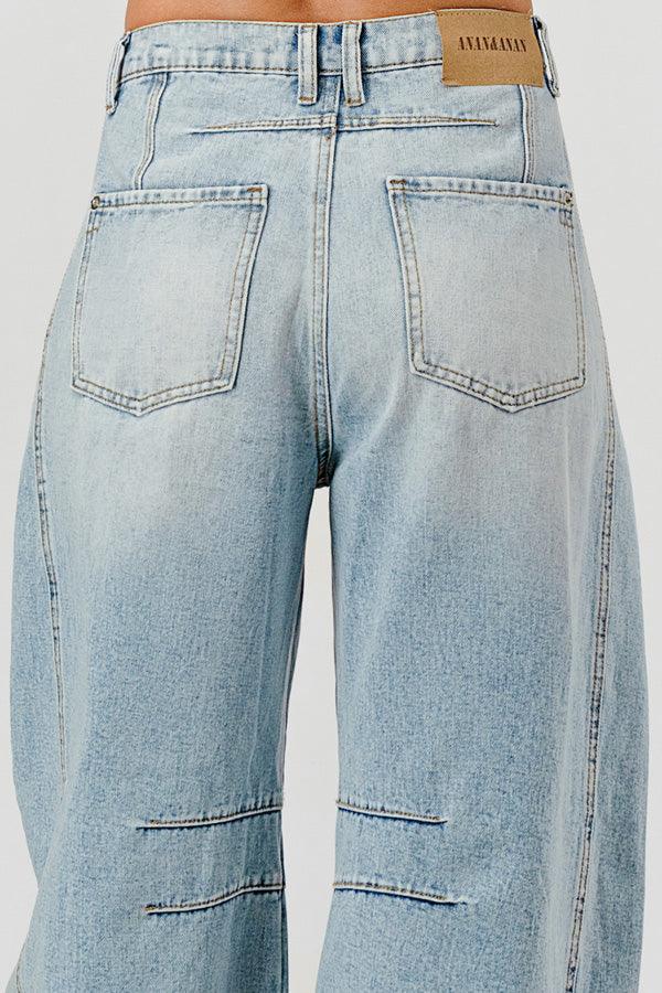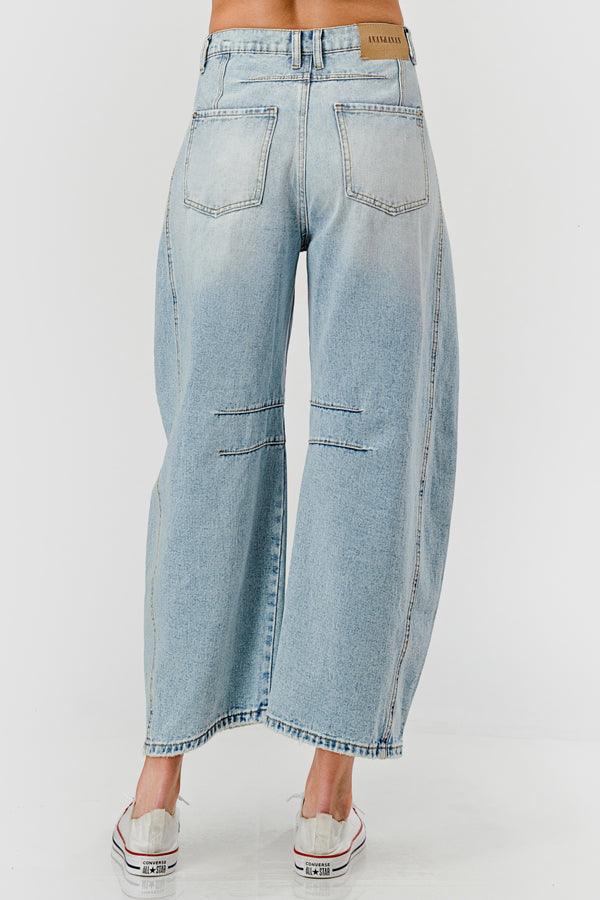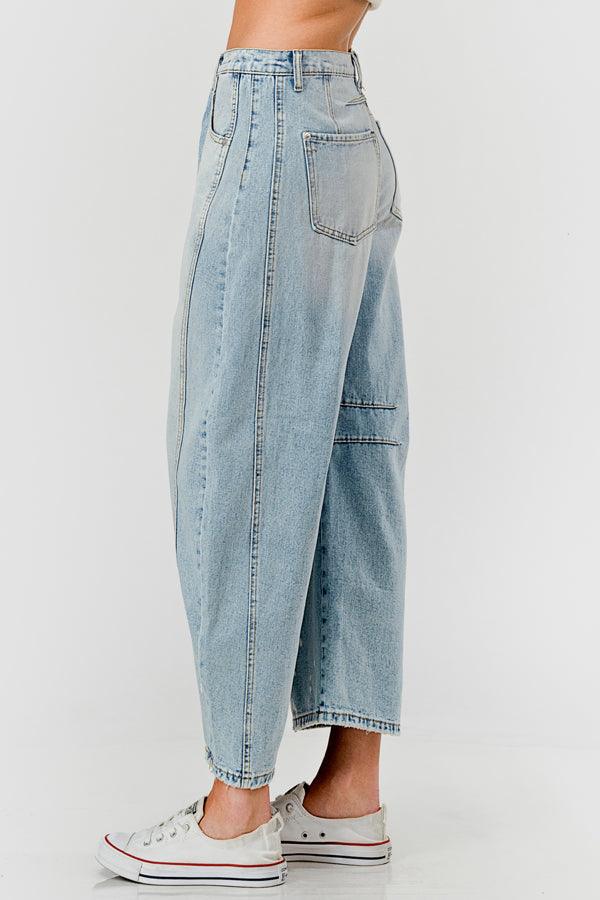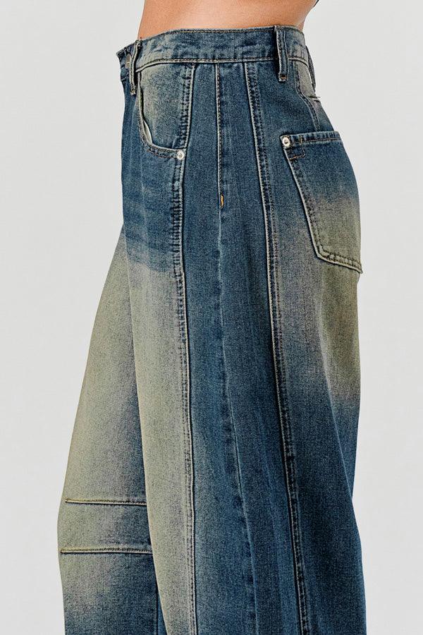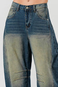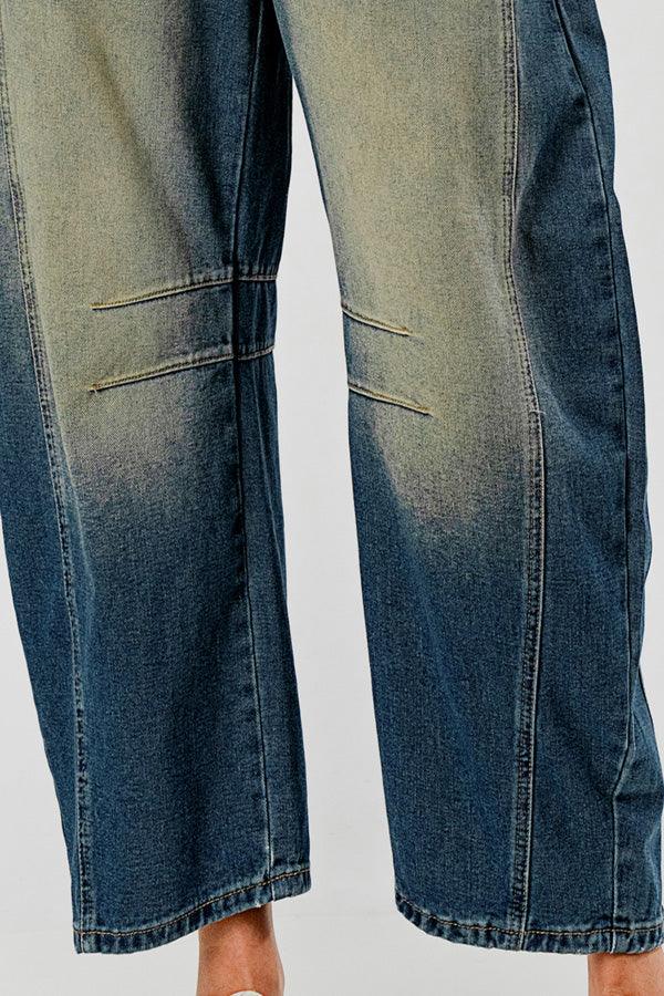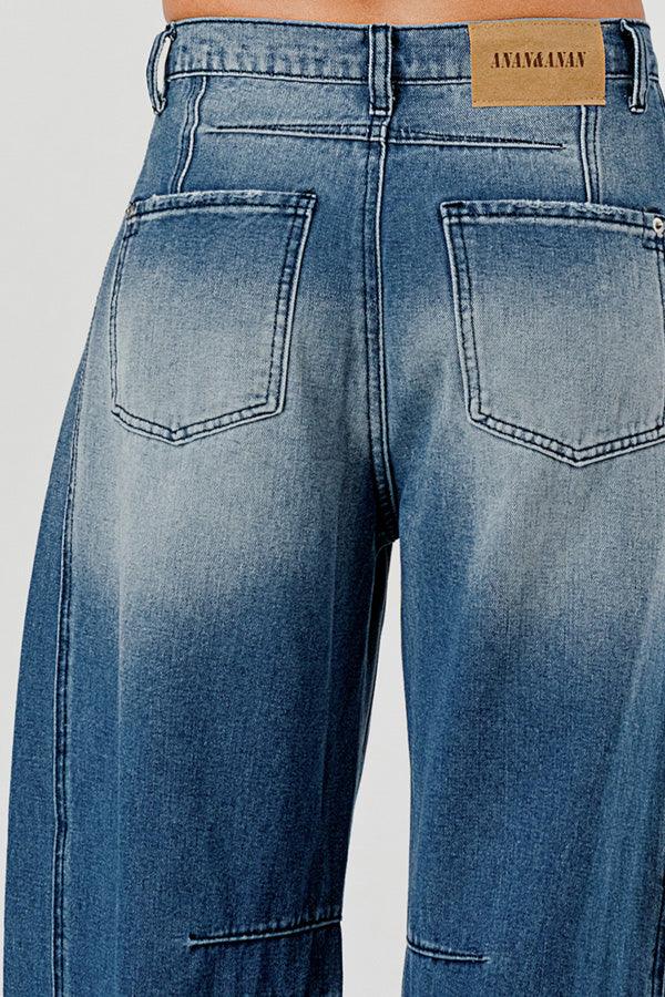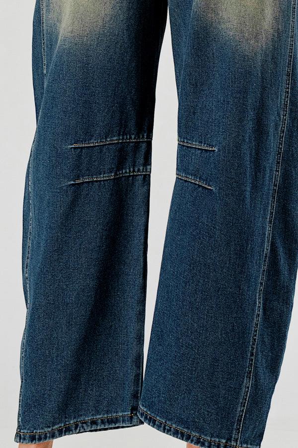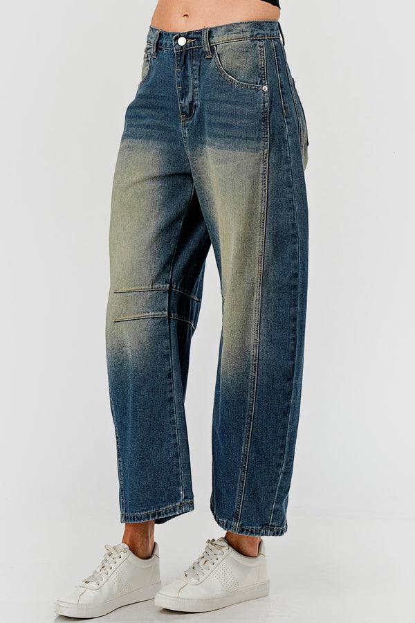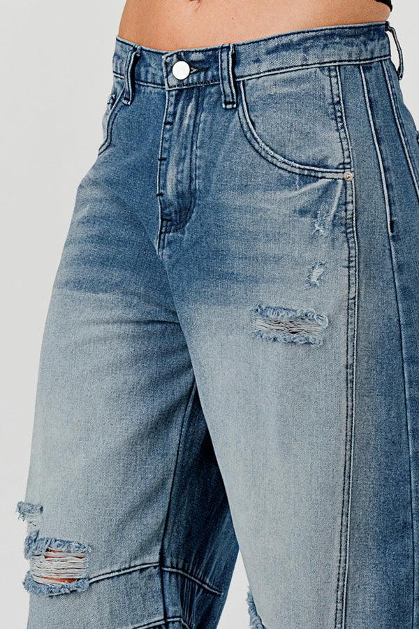 Distressed Baggy Mid Rise Barrel Denim Pants SKP522