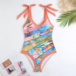Shoulder Tie One Piece Swimsuit with Sarong Wrap Up Y116