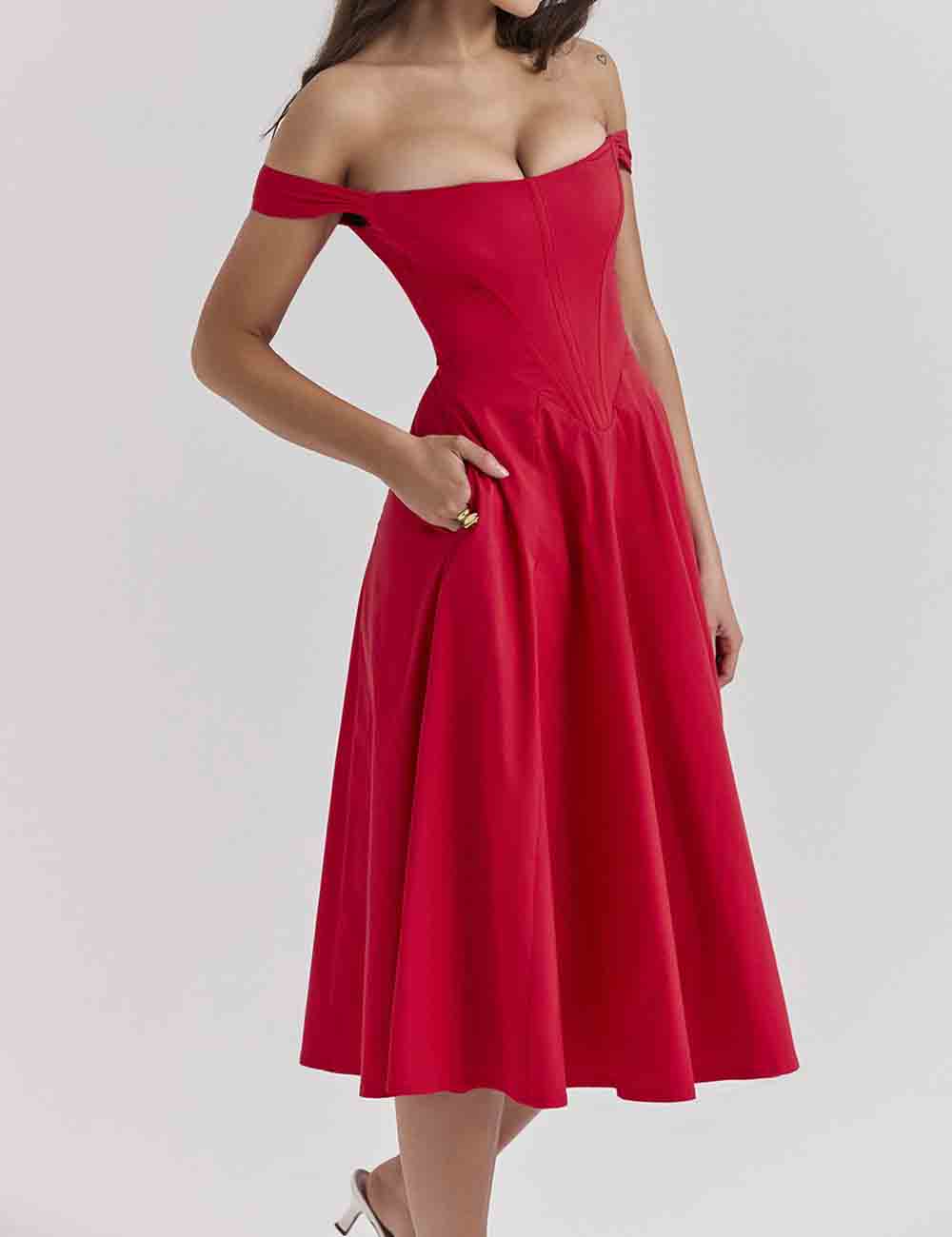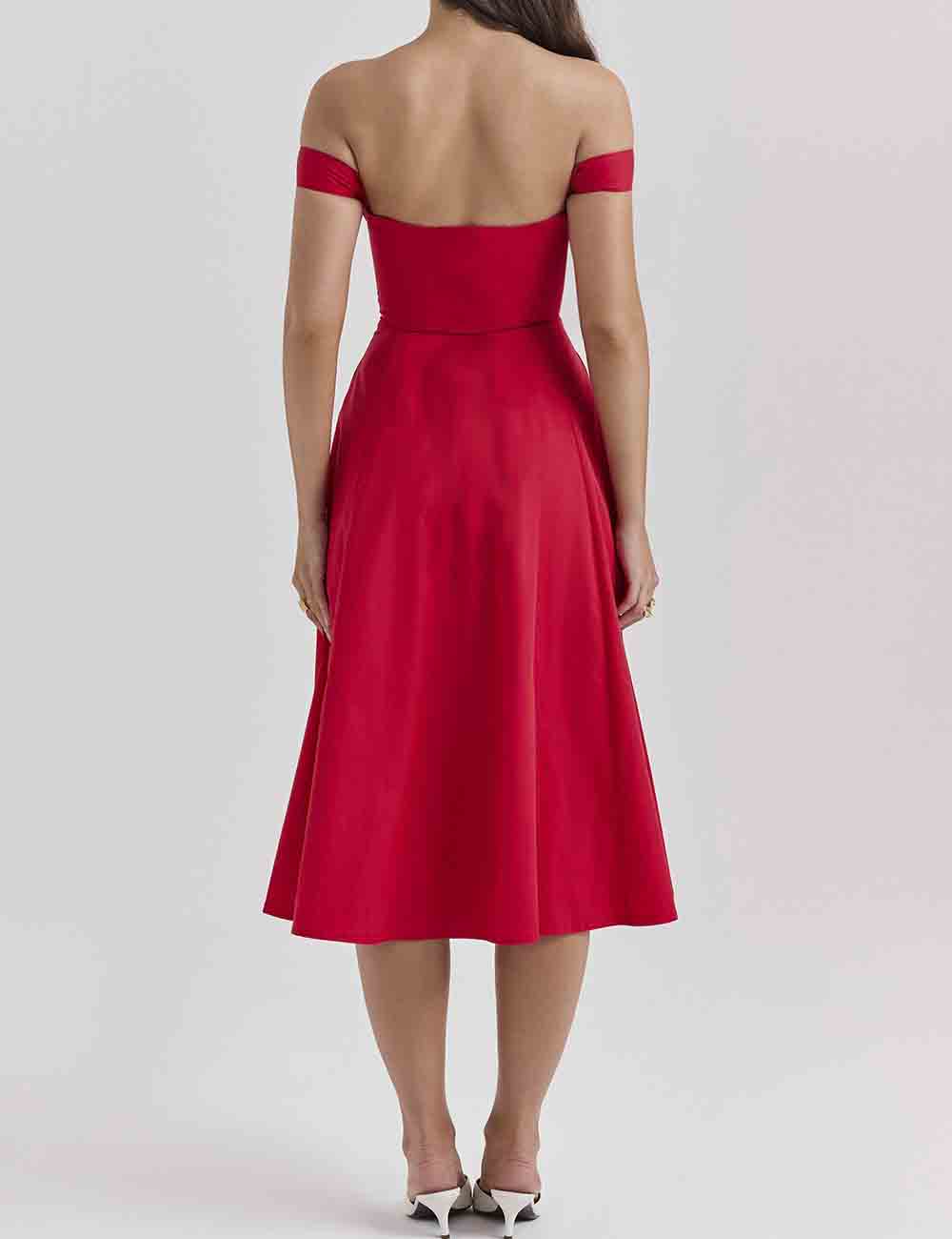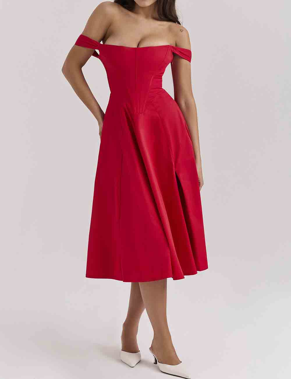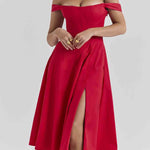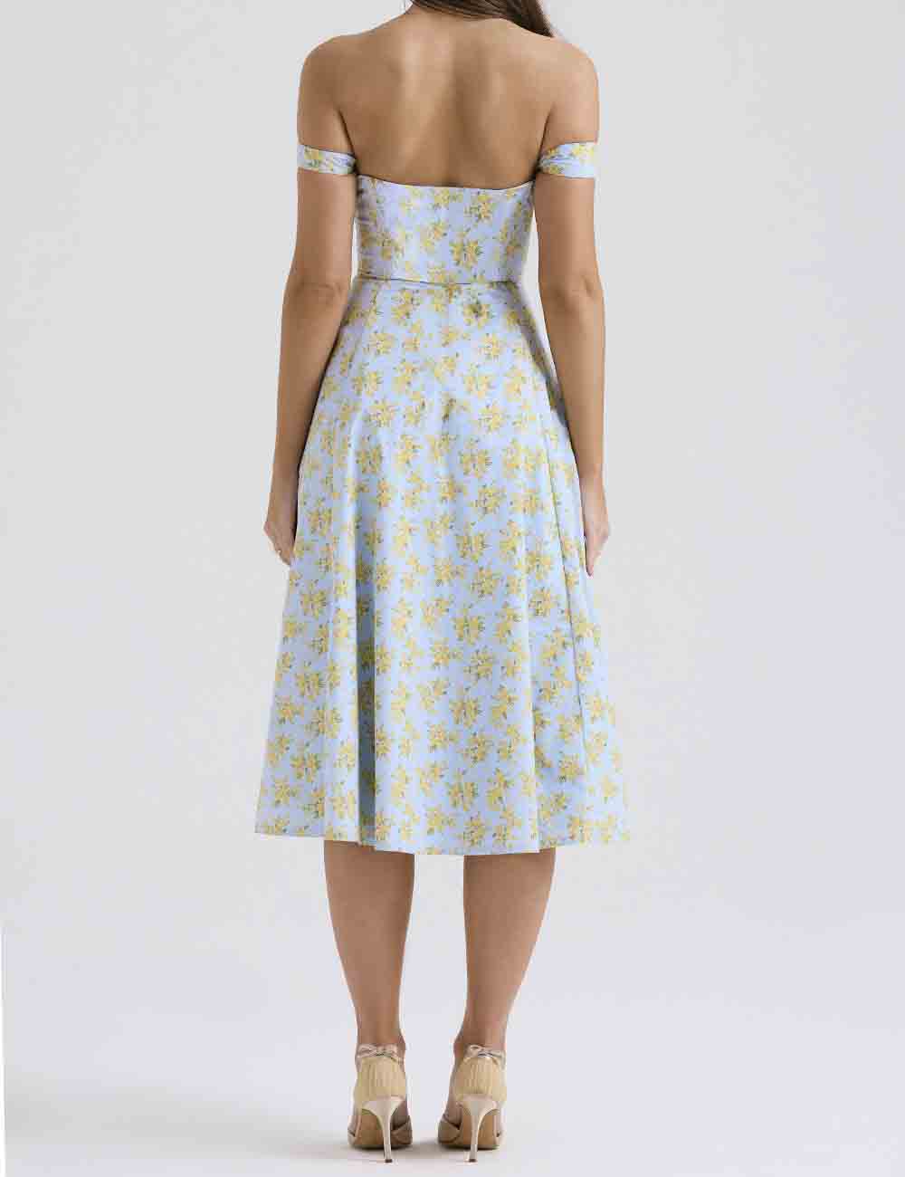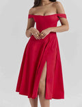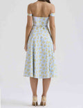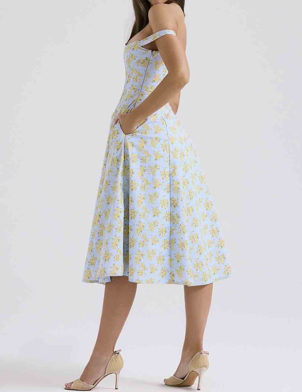 Ladies Floral Print Strape Shoulder Slit Midi Dress