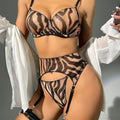 Ladies See Through Zebra Print 3PCS Lingerie Set SKLG4072