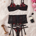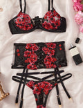 Ladies Floral Color Block Embroidery 3PCS Lingerie Set SKLG4120