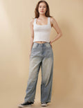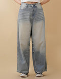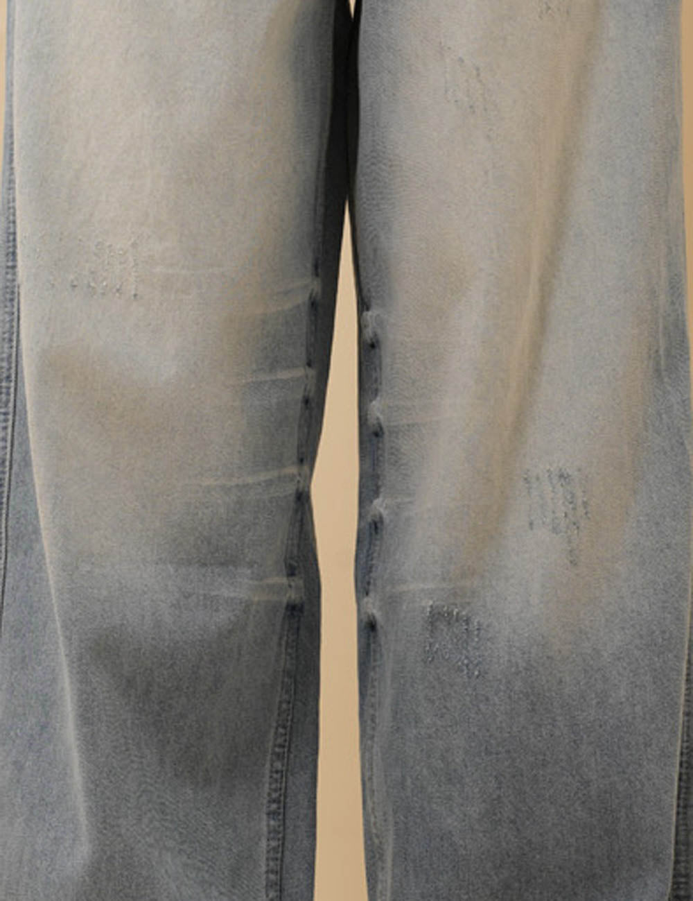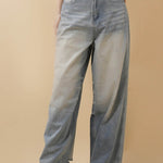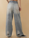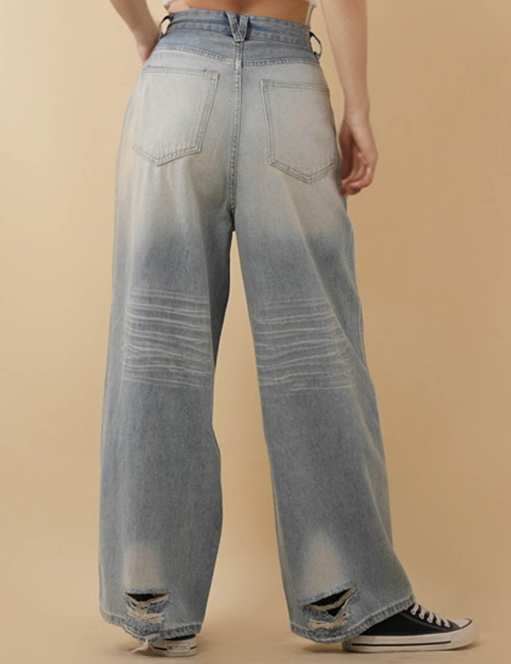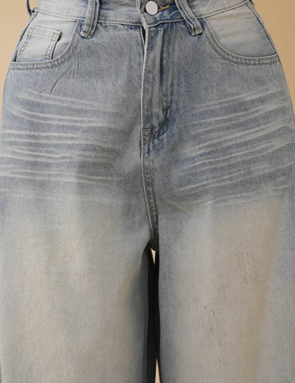Ladies Distressed Button Pocket Straight Leg Denim Pants
