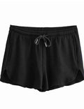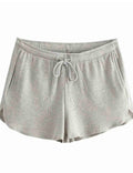 Ladies Solid Color Waist Drawstring Shorts