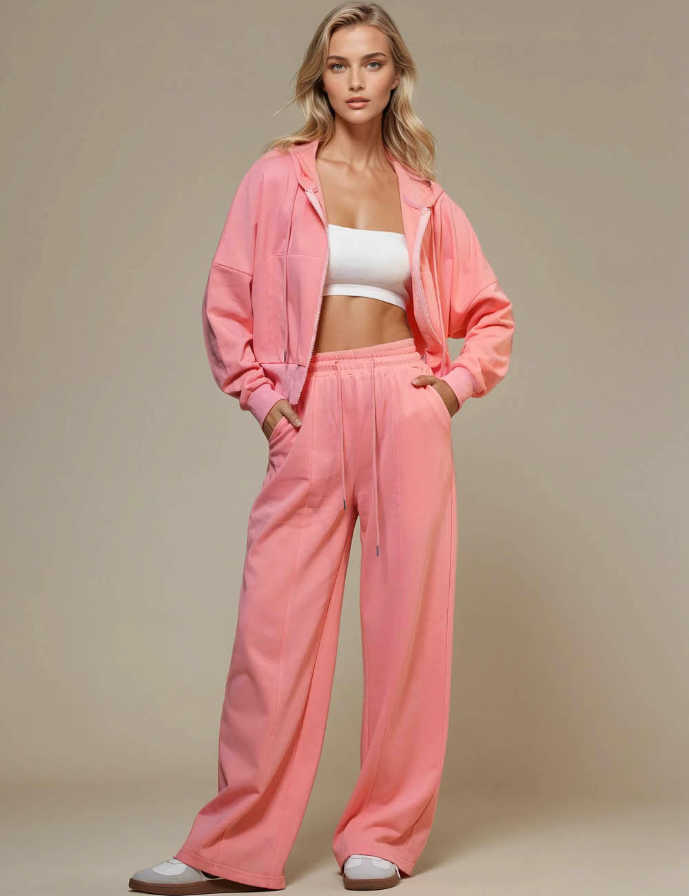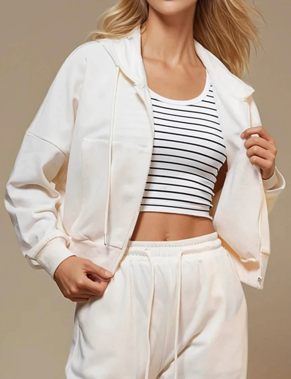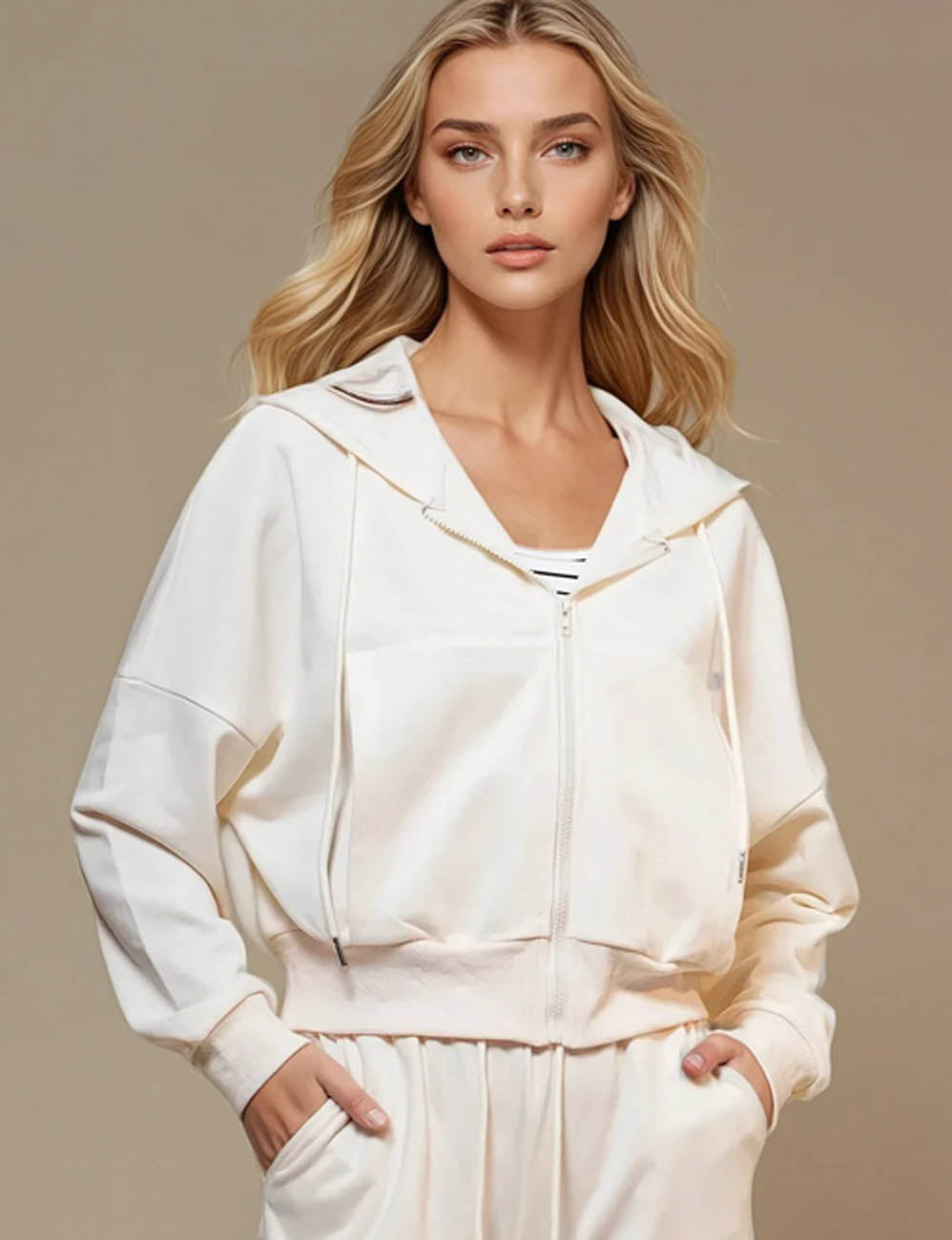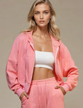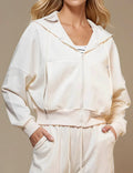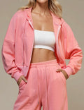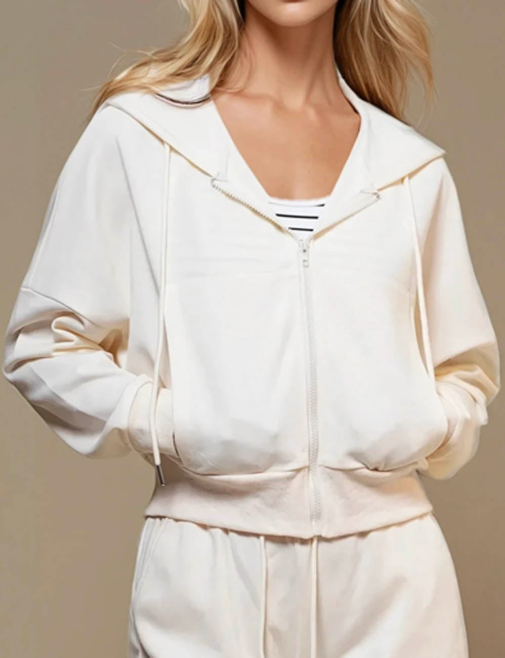 Ladies Solid Color Loungewear Top Zip Hoodie SKST50771T