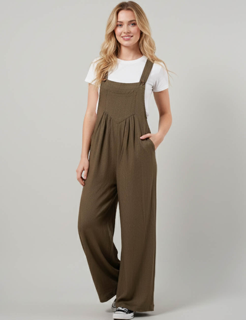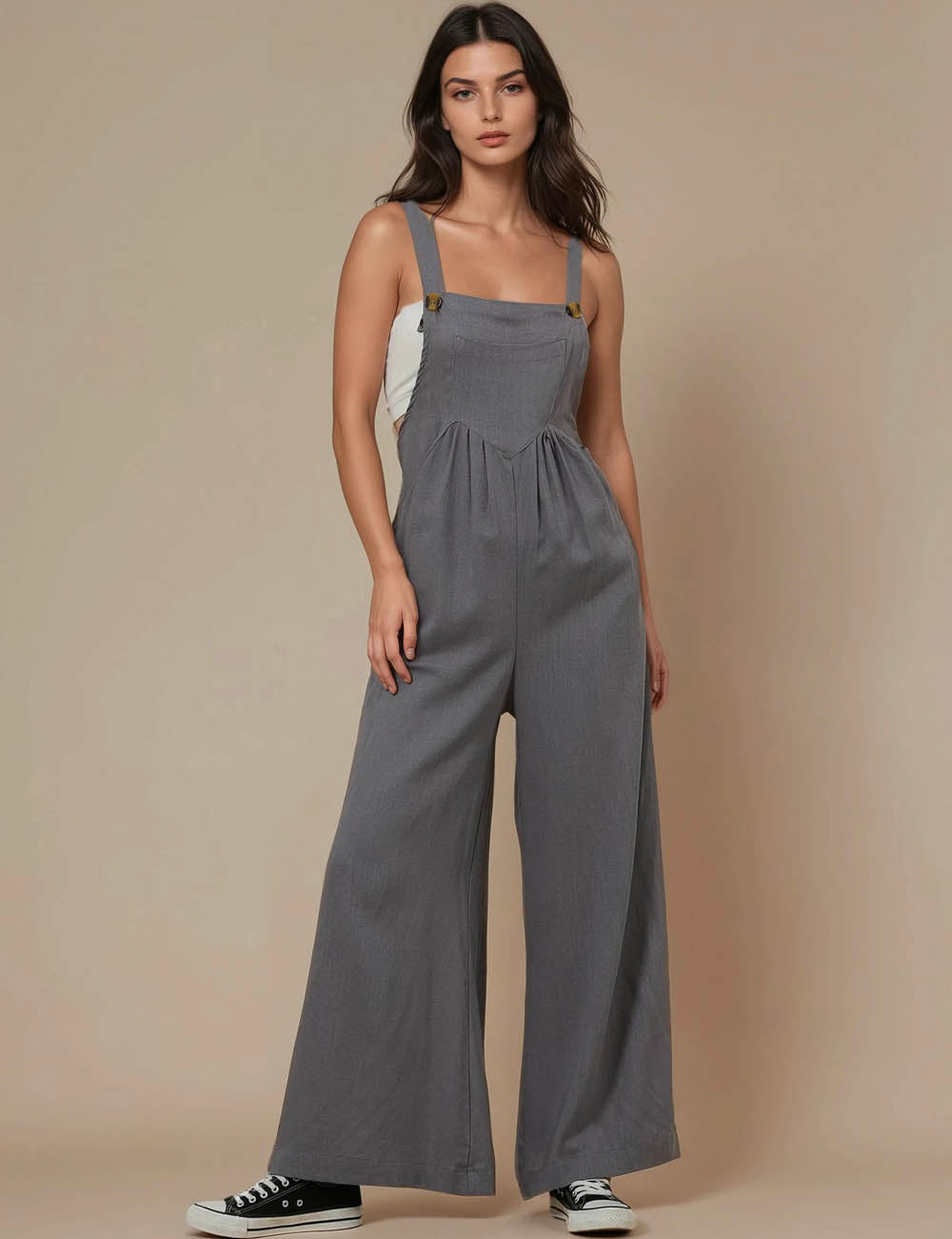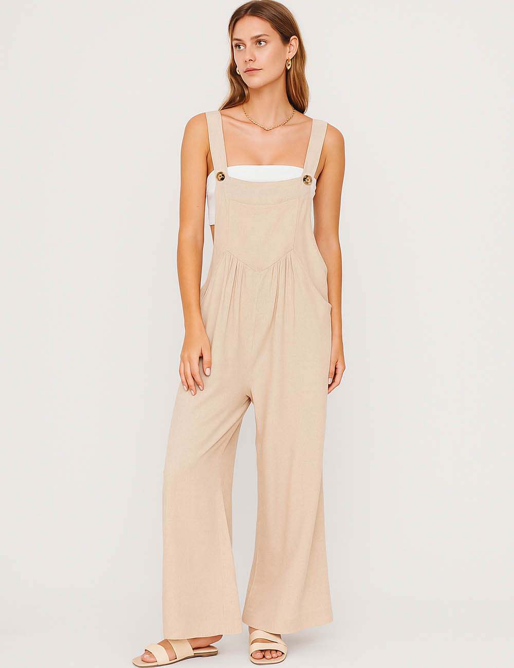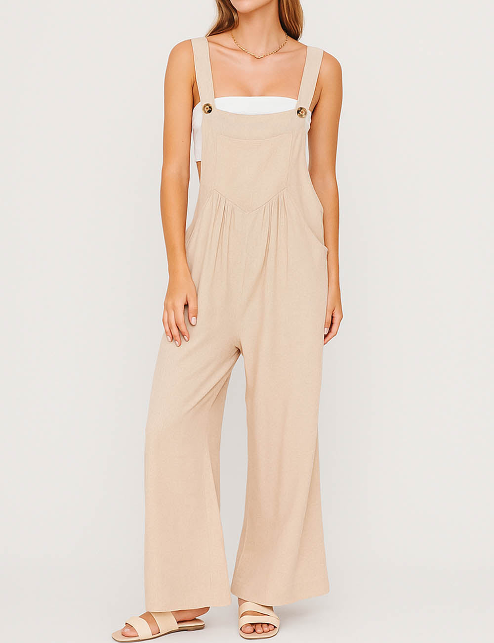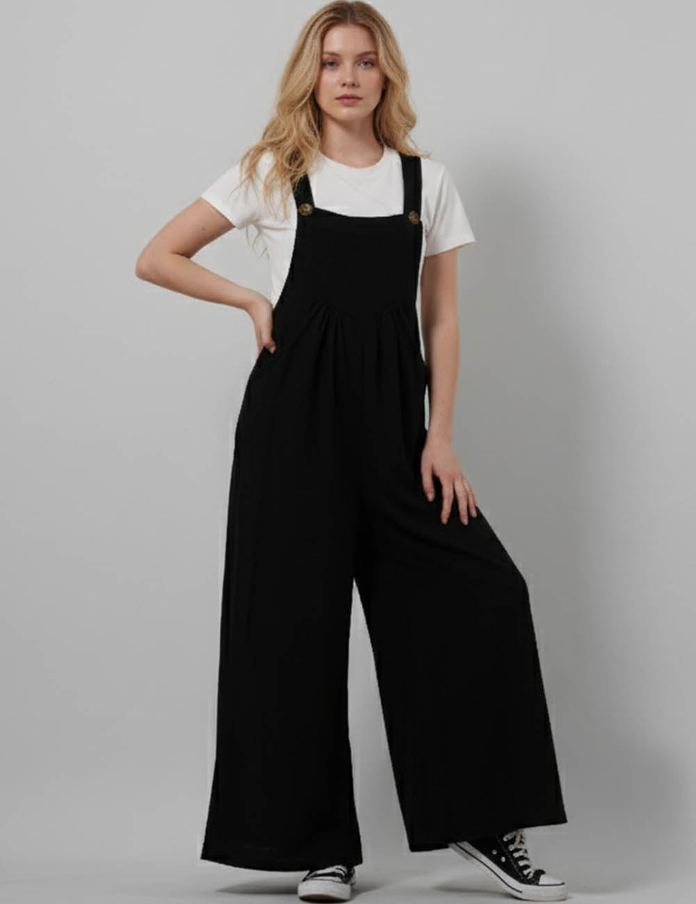 Solid Color Botton Strape Overalls Daily Jumpsuit SKJ2357