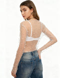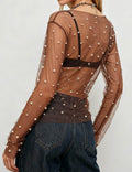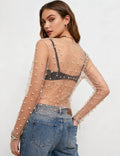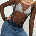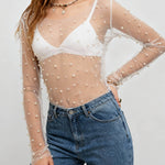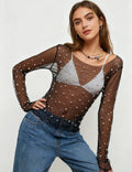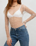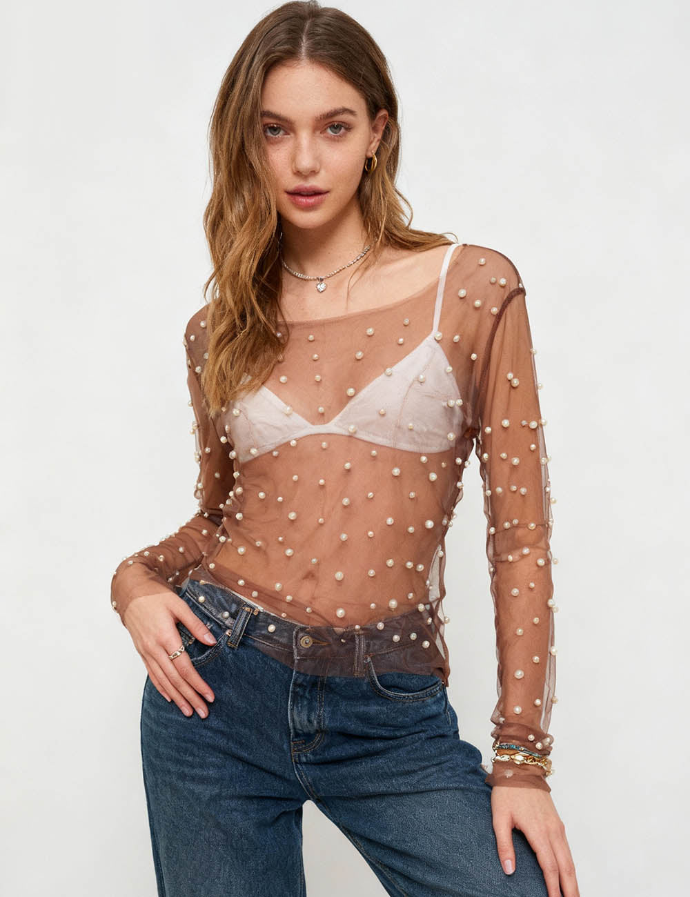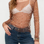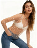 Sparkle Pearl Studded Sheer Mesh See Through Top SKT21069
