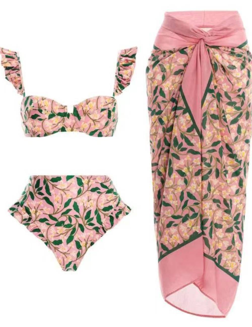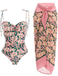 String Shoulder Floral Swimwear with Salong SKSW40157