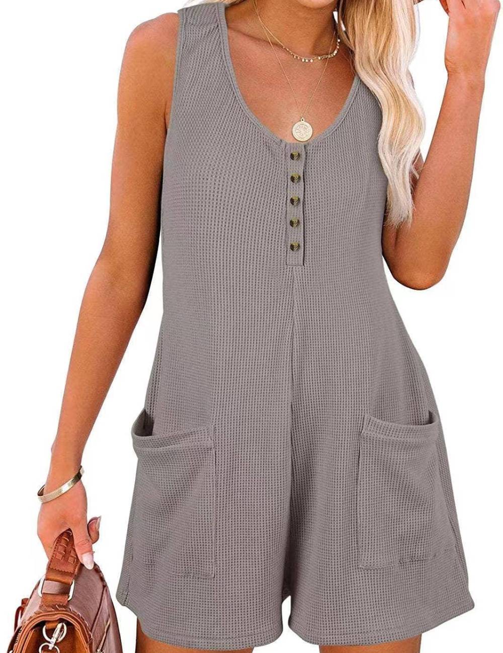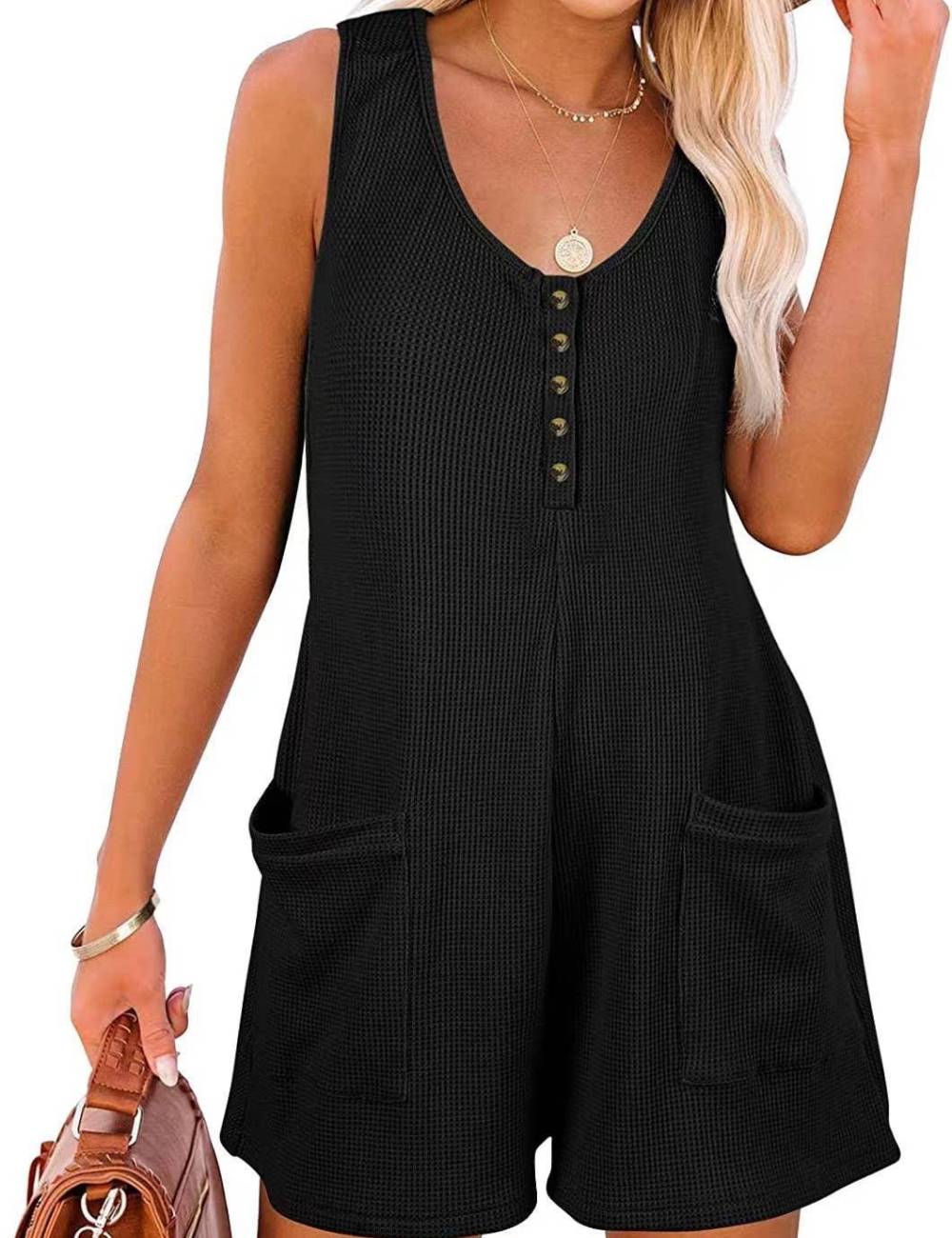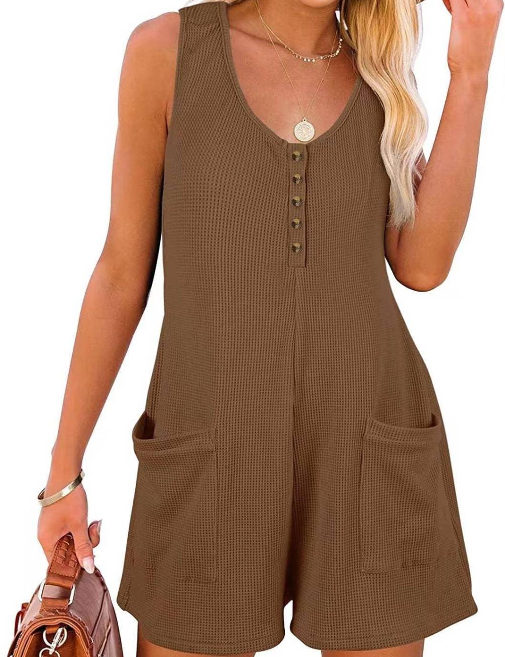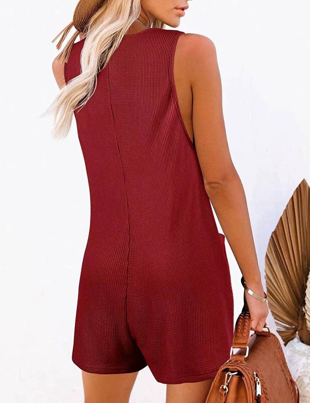 Waffle Two Shoulder Romper Sleeveless Jumpsuit SKJ23101