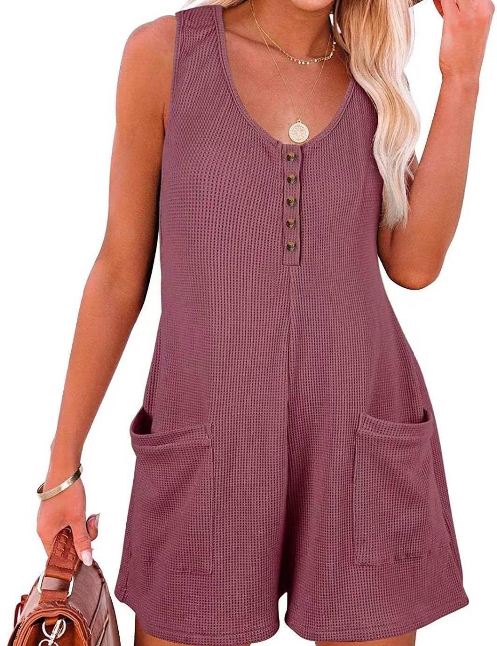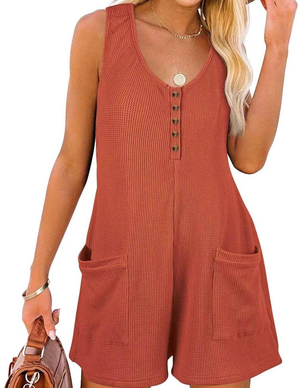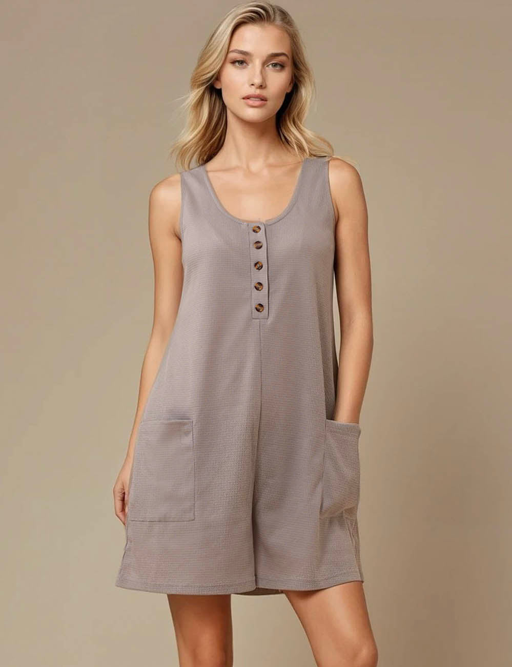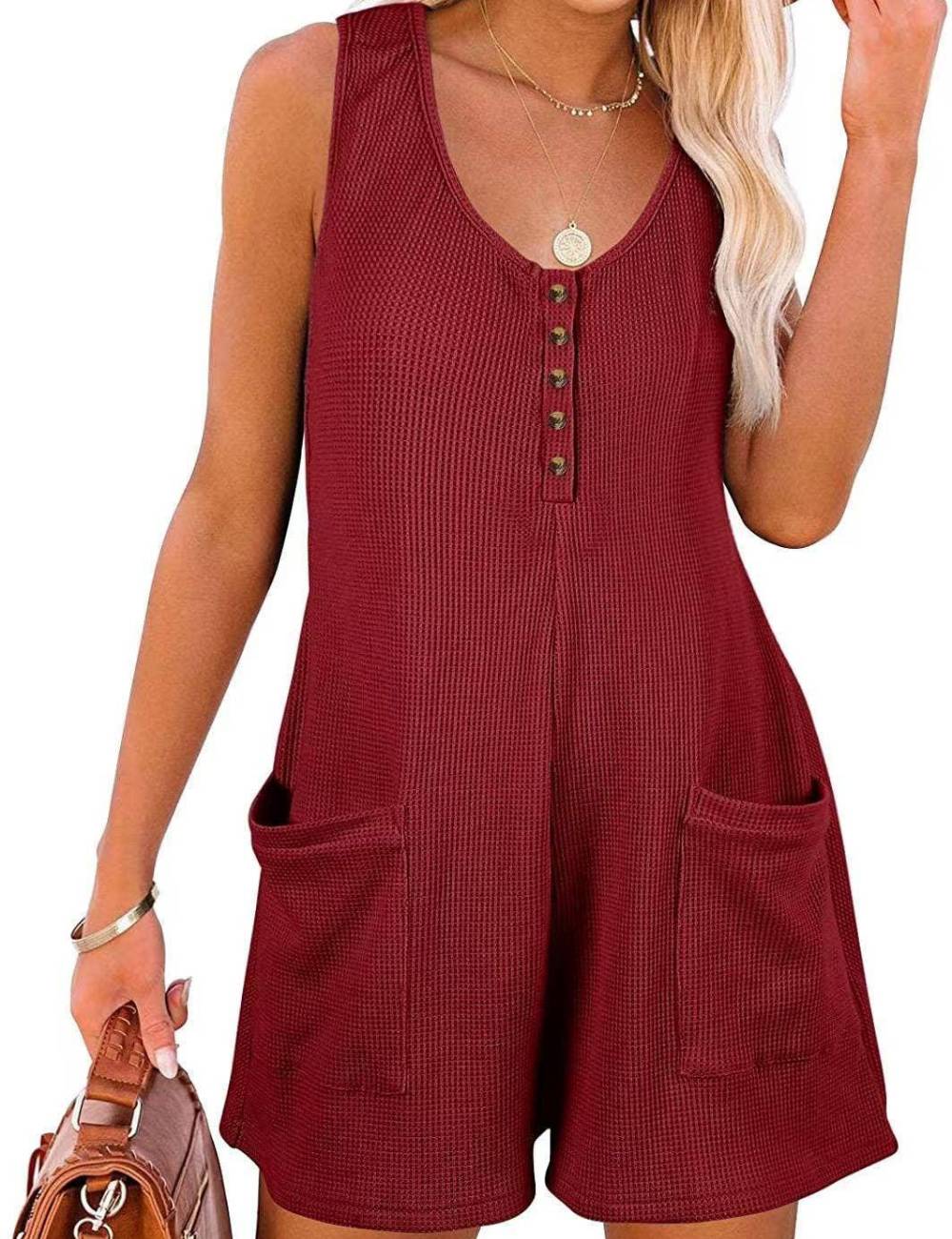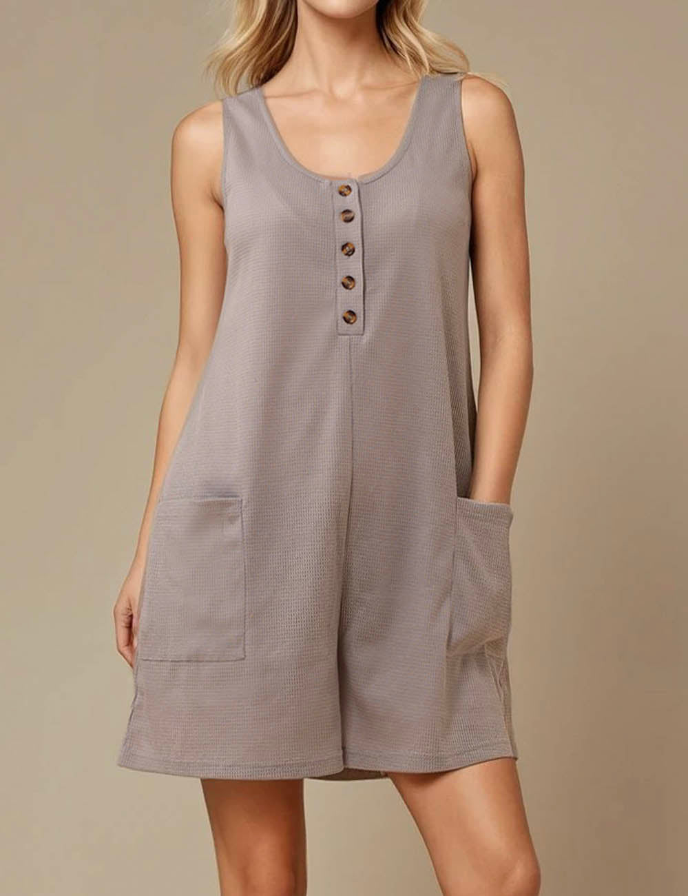 Waffle Two Shoulder Romper Sleeveless Jumpsuit SKJ23101