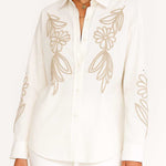 Women Color Block Flower Leaves Buttom Down Shirt