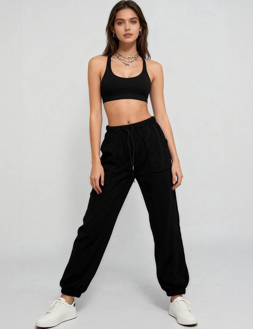 Women Elastic Waist Joggers Pockets Sweatpants SKST50781B