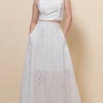Women Eyelet Top and Midi Skirt 2PCS Set SKST50362