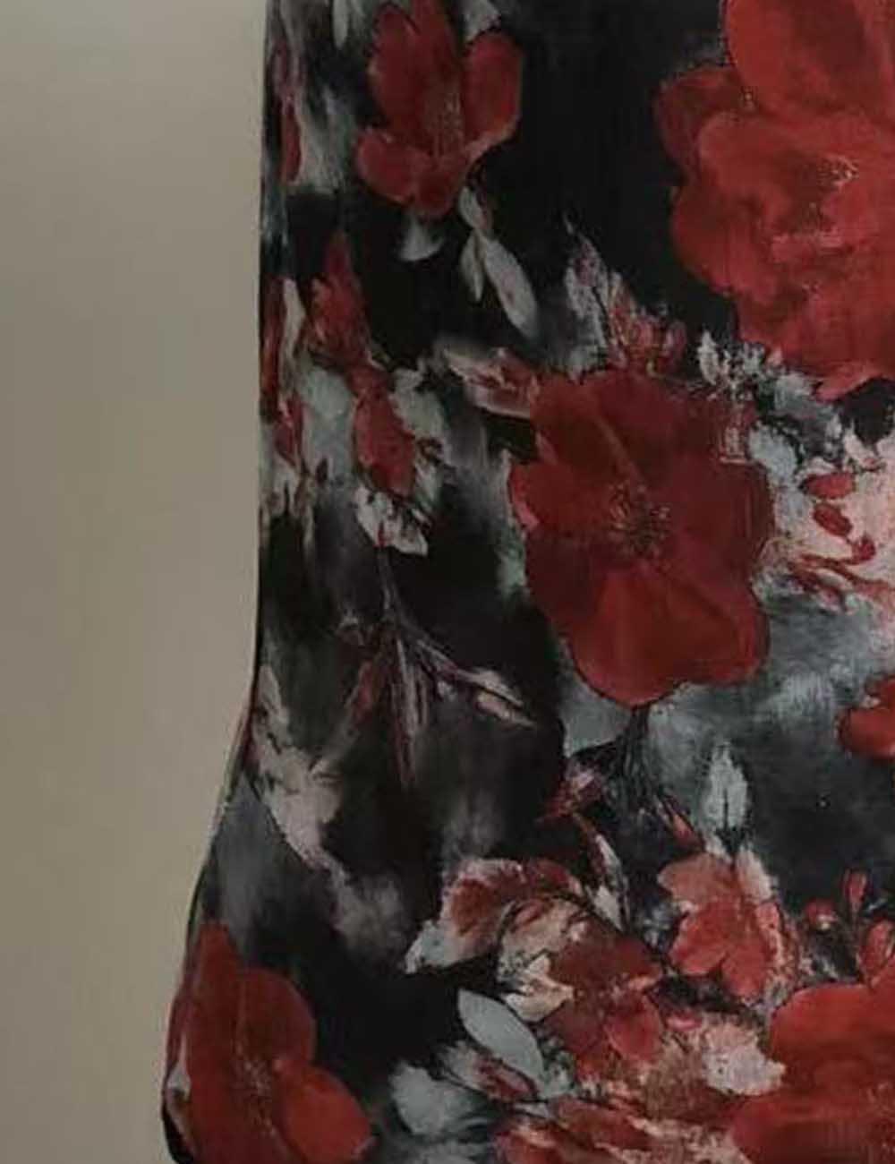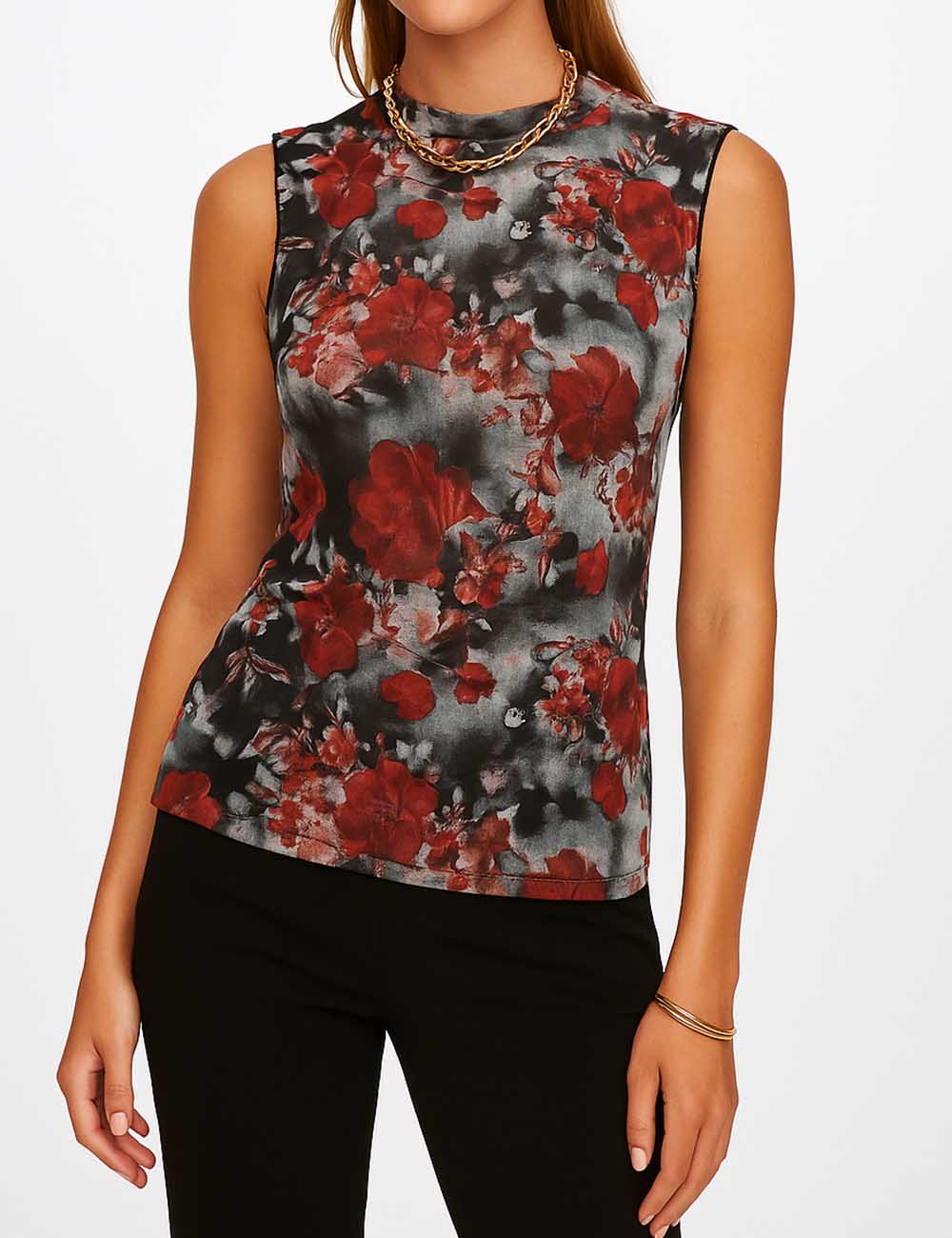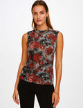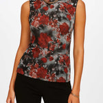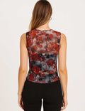 Women Flower Print See Sheer Mesh Layering Tank Top