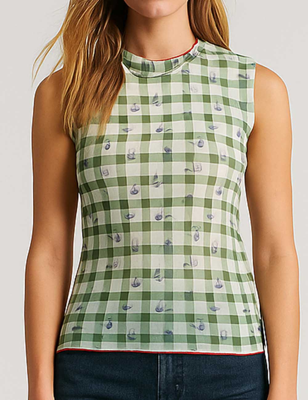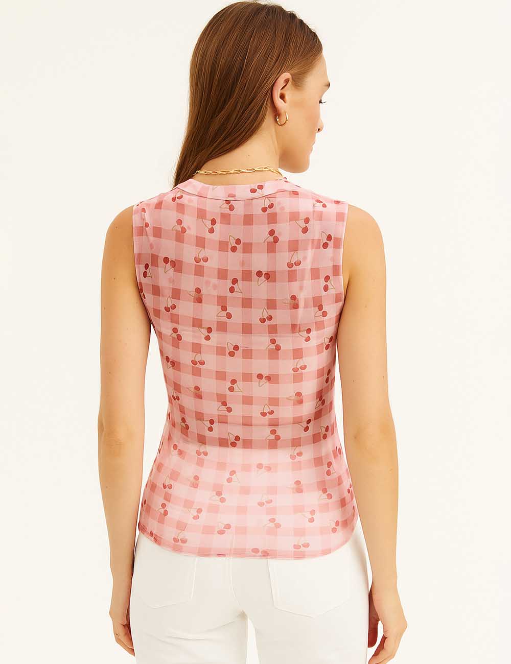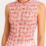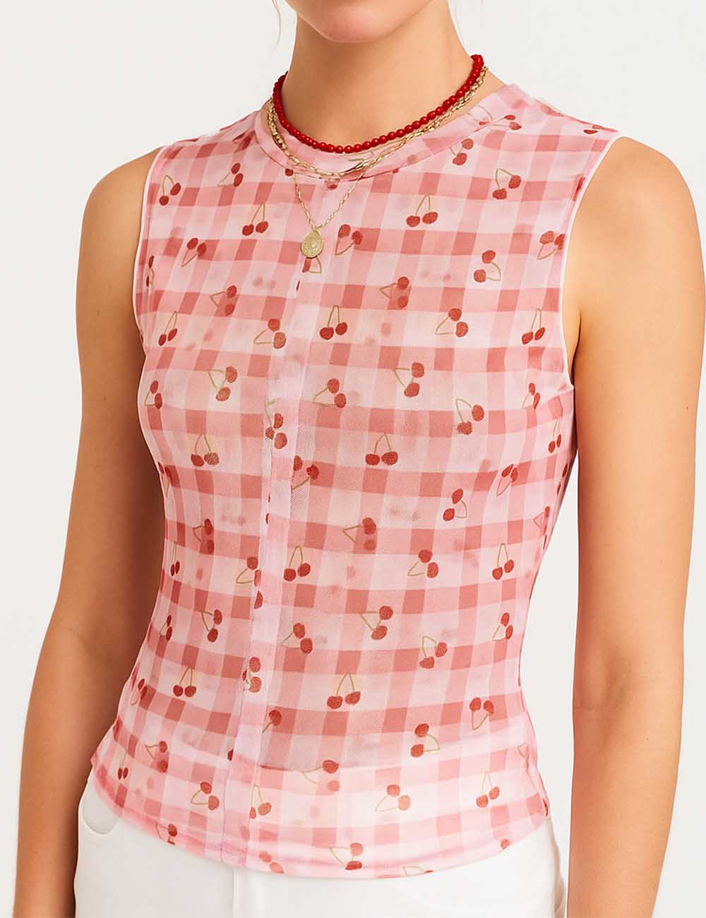 Women Sleeveless Mesh Tank Top Checked See Sheer Top