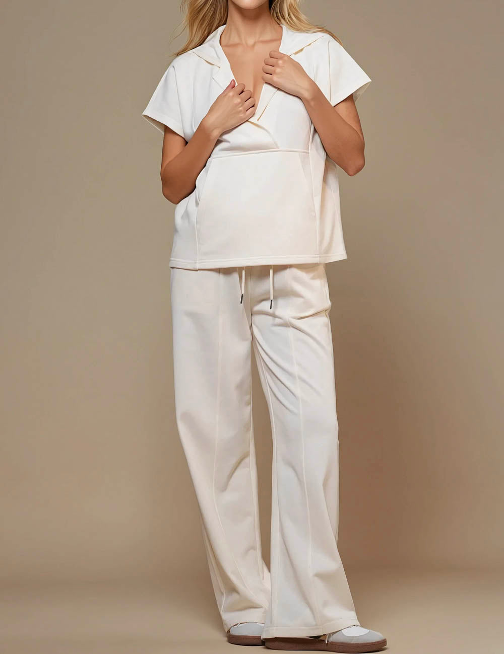 Women V-Neck Pullover Hoodie Pants 2PCS Set SKST50777